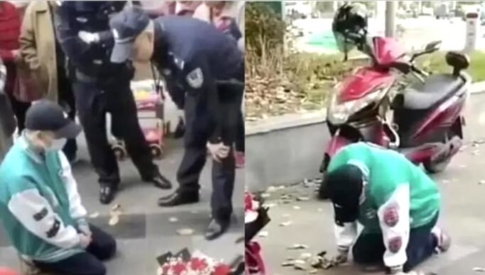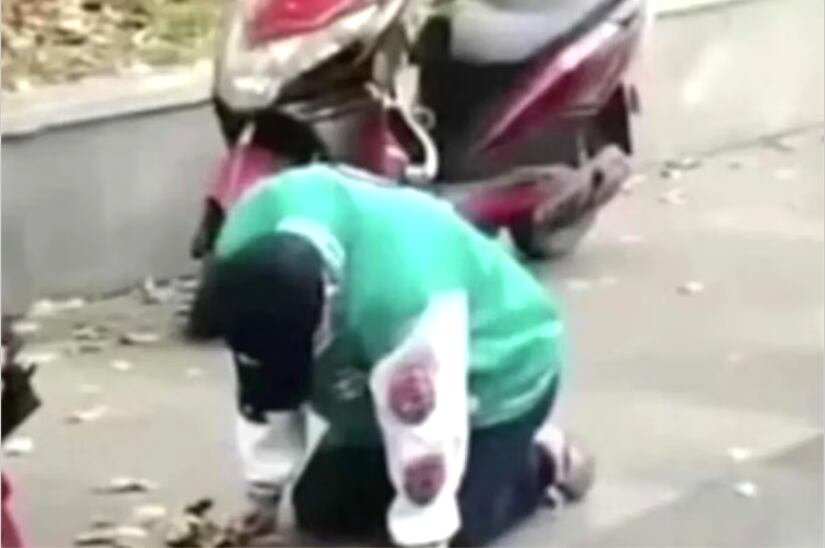 La Policía intervino, pero a pesar de las peticiones de los oficiales para que se retirara, el hombre seguía inmóvil y arrodillado frente a un edificio.