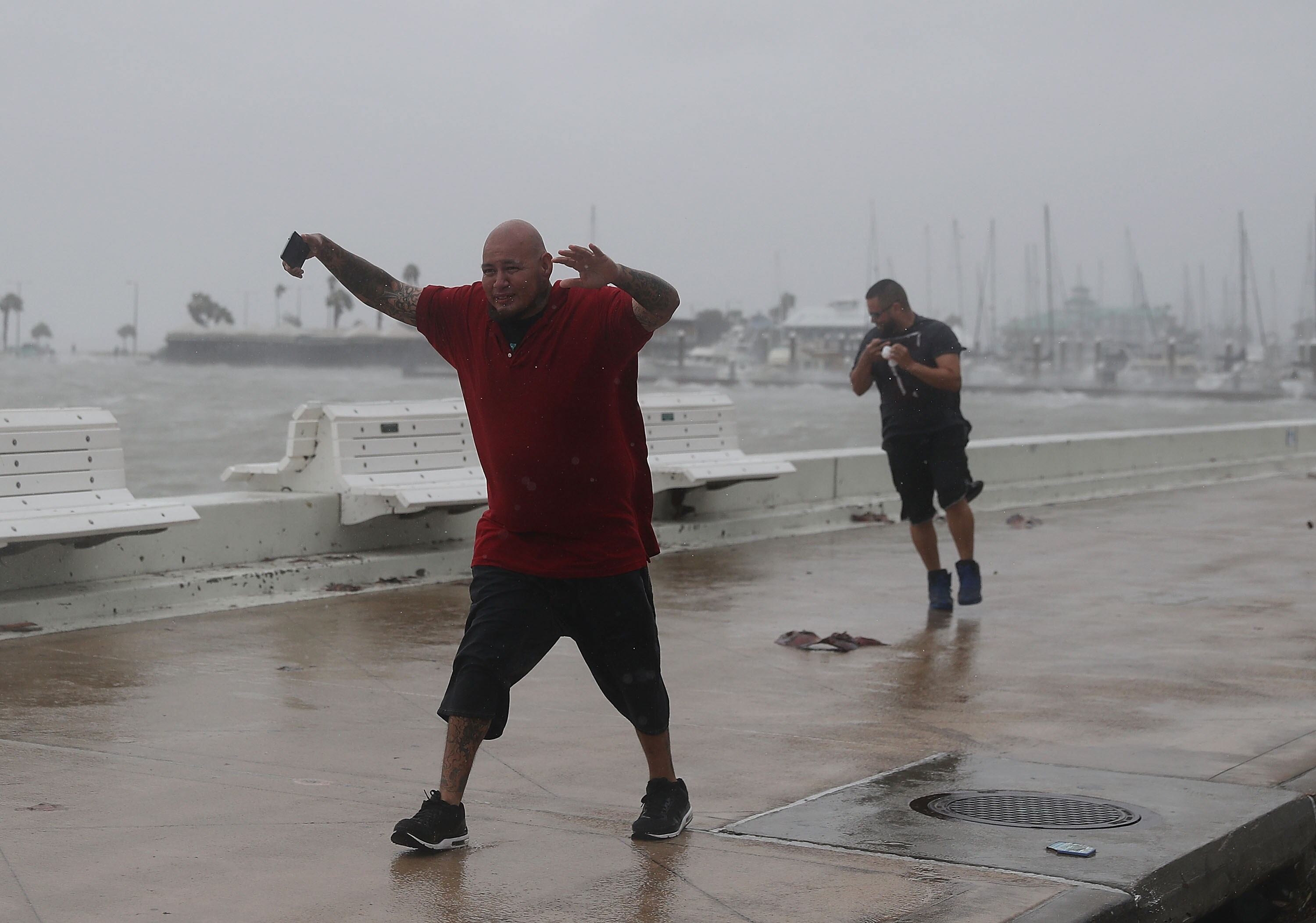 Al caer la noche, los poderosos vientos ya habían empezado a causar daños en el centro de Corpus Christi, la ciudad más cercana al vórtice de la tormenta. Un bote de basura se desplazó por un estacionamiento detrás de hoteles en el rompeolas. En la urbe de 325.000 habitantes, un poste de un semáforo había sido derribado y estaba con los cables al aire, pero los focos aún encendían.