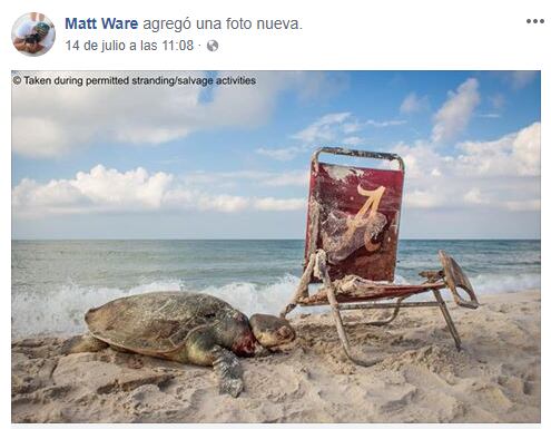 Durante un patrullaje por la playa, un estudiante descubrió el cadáver de una tortuga de la especie Kemps Ridley, que actualmente está en peligro de extinción, con una silla amarrada en el cuello.