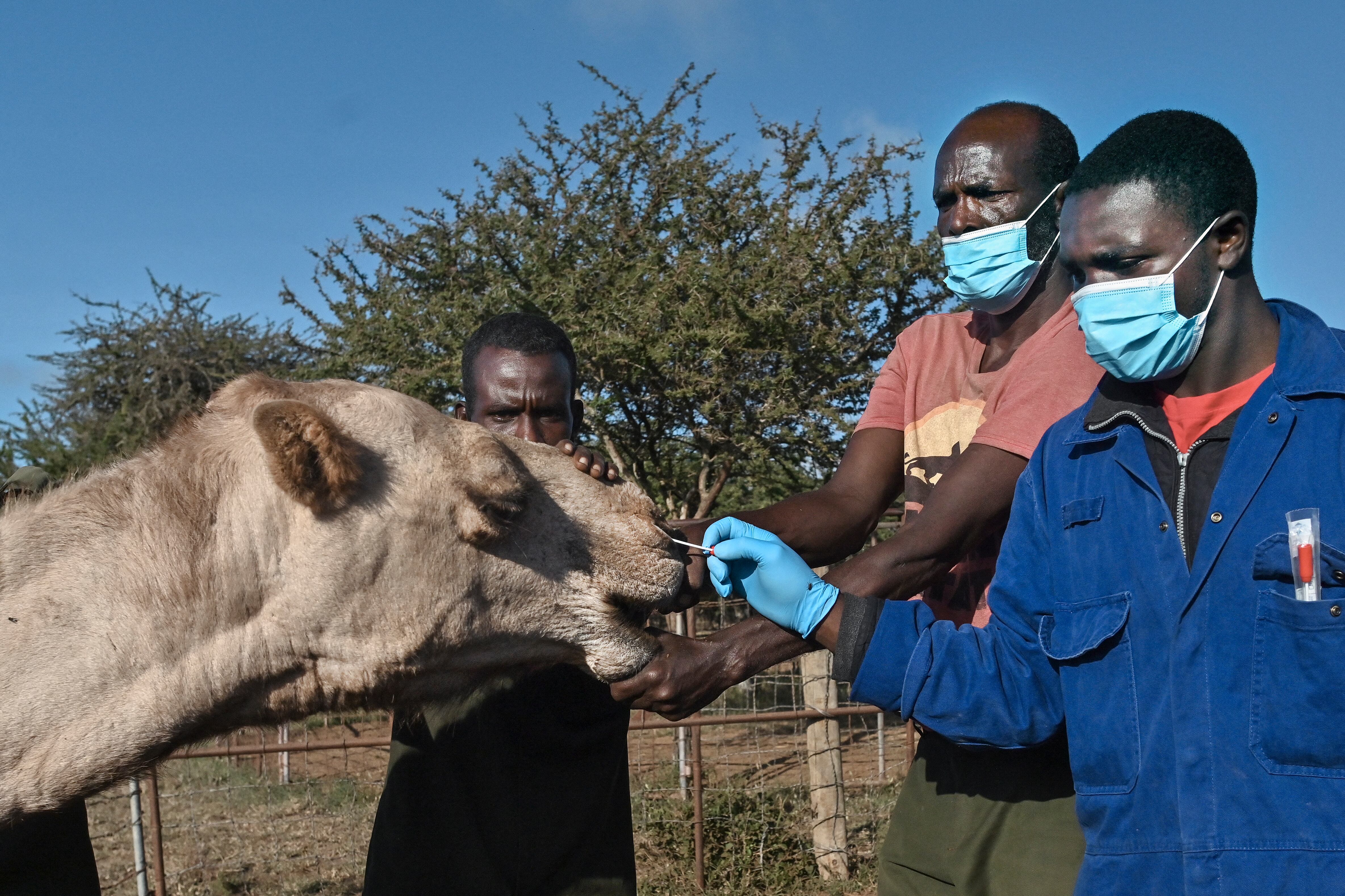 En una reserva natural de Kenia, un dromedario refunfuña cuando un veterinario hace girar un hisopo gigante en su fosa nasal. La hacen una prueba PCR para detectar un primo del covid-19, el MERS, que algún día podría causar la próxima pandemia mundial.