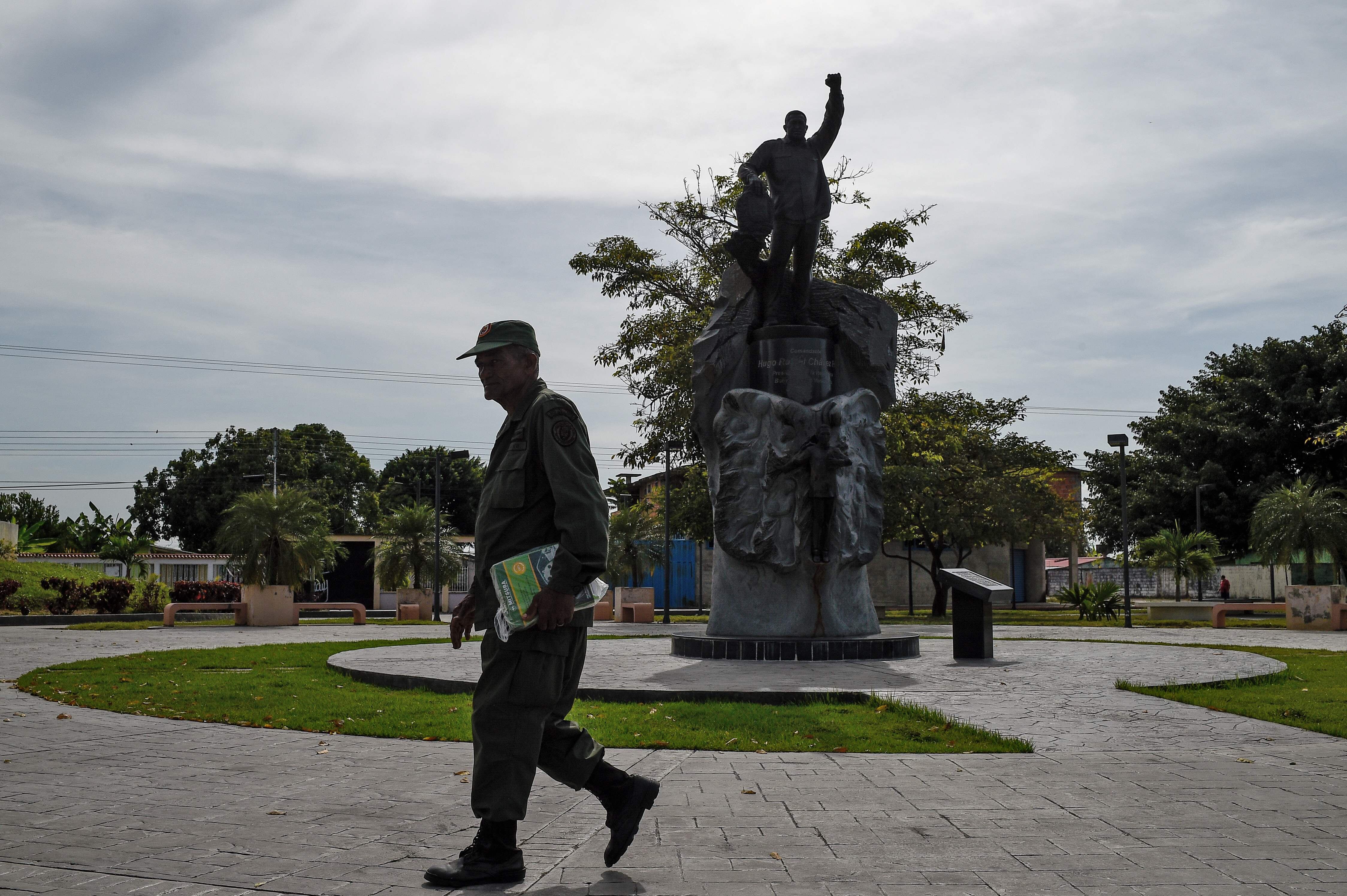 Calles casi desiertas y comercios cerrados rodean la enorme estatua de Hugo Chávez en Sabaneta de Barinas, Venezuela. Convertido por el gobierno en lugar de culto, el pueblo natal del fallecido expresidente no escapa a la demoledora crisis de ese país sudamericano.