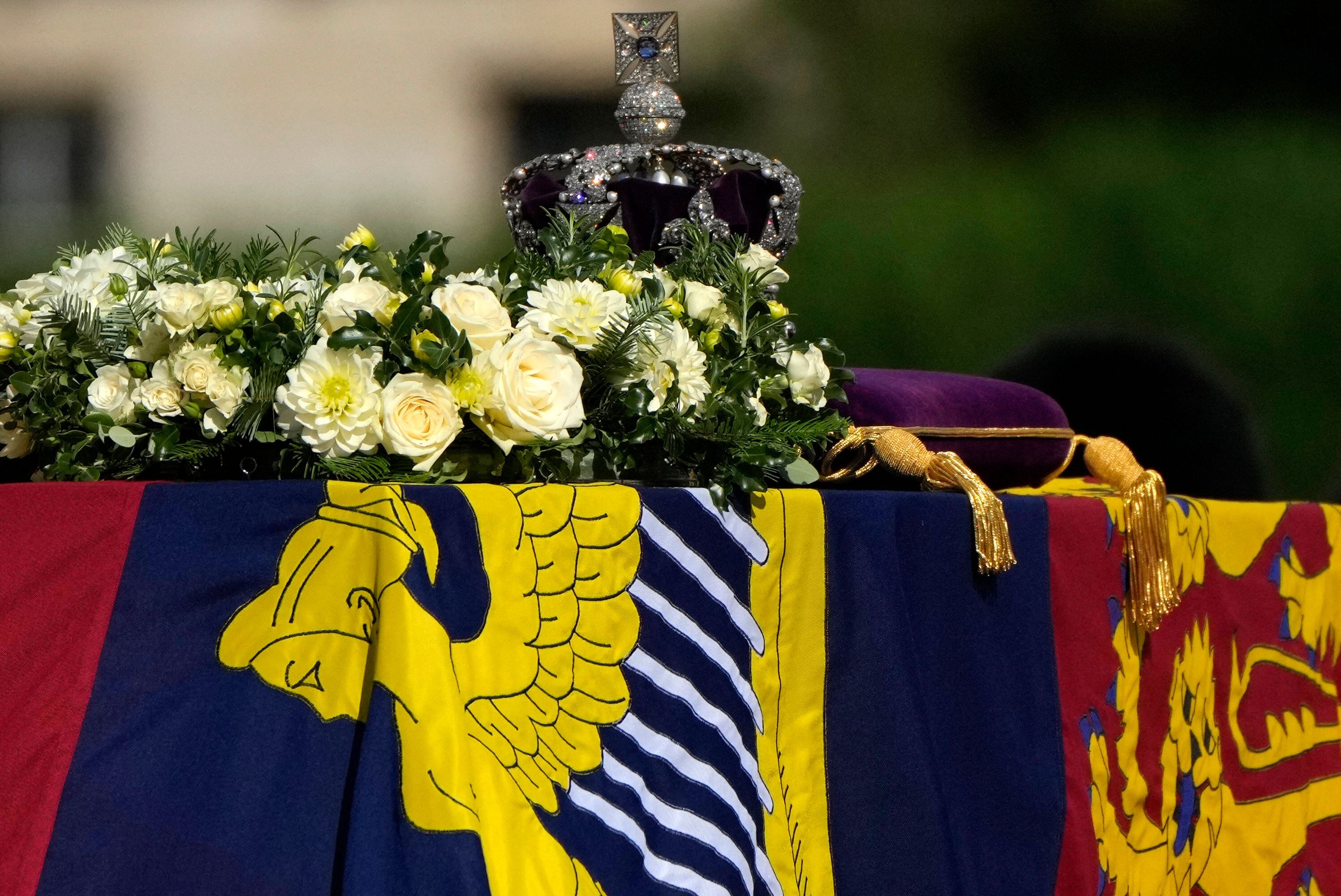 La corona imperial británica, colocada sobre el ataúd de Isabel II durante la procesión que el miércoles la llevó del palacio de Buckingham hasta Westminster, es una de las piezas de orfebrería cubiertas de piedras preciosas más famosas del mundo y un símbolo del poder real.
