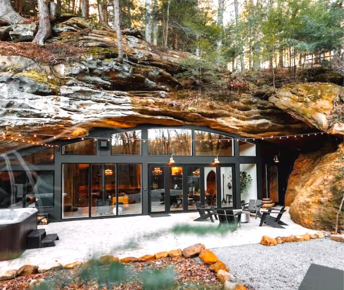 The Cave, asi la llamaron, fue construida dentro de una impresionante cueva escarpada. Sin embargo no es una vivienda permanente, sino que se trata de un exclusivo alquiler de vacaciones: una casa de lujo nueva y única en medio de la reserva natural Rockbridge. Los propietarios anunciaron por primera vez esta nueva incorporación hace aproximadamente ocho meses y en noviembre del 2022 finalmente comunicaron que la casa estaba lista para ser habitada.