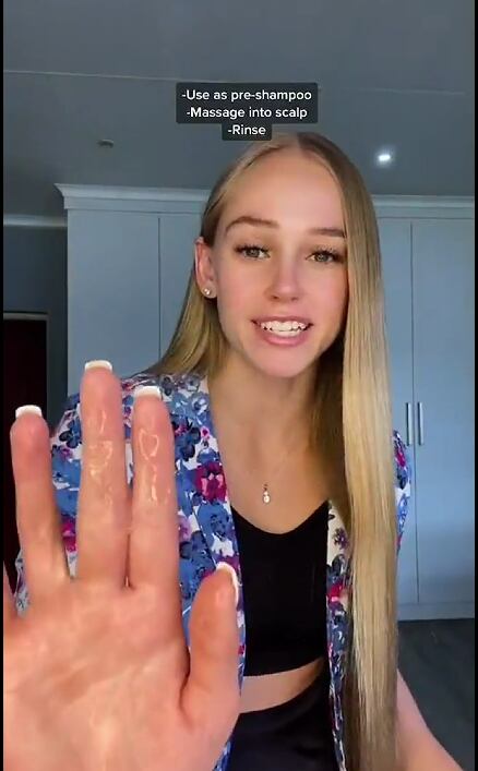 “También me gustaría señalar que es sumamente importante masajear el cuero cabelludo con un aceite apropiado para cada necesidad”, dice en un video.