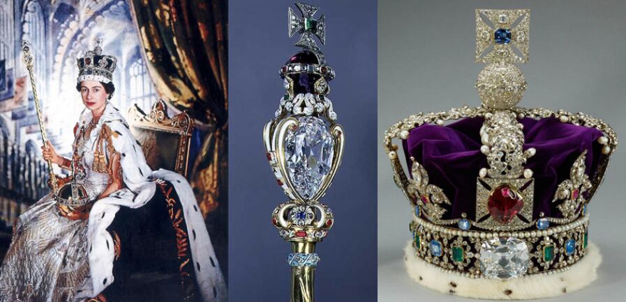 De 110 centímetros de largo, el cetro pesa 1.150 gramos, representa el poder temporal del soberano. En 1911 se le añadió el impresionante diamante Cullinan I de 530,2 quilates. El diamante es tan grande que el cetro tuvo que ser reforzado para soportar el peso.