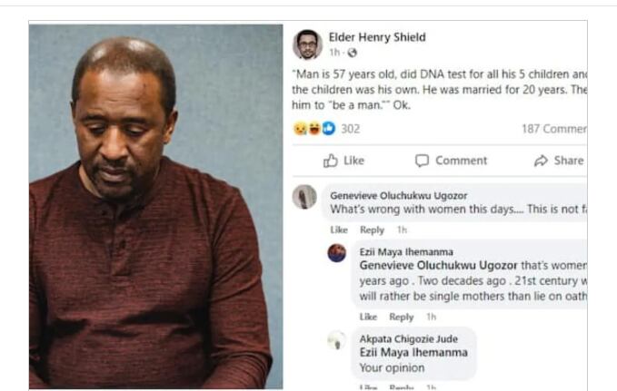 “¿Qué lo impulsó a hacerse el ADN veinte años después del matrimonio? ¿No hay parecido con los niños? Tal vez tenía problemas de fertilidad. Bueno, puede tener hijos a los 57 años. Los otros niños no lo abandonarán”, puso la usuaria Ezii Maya Ihemanma.