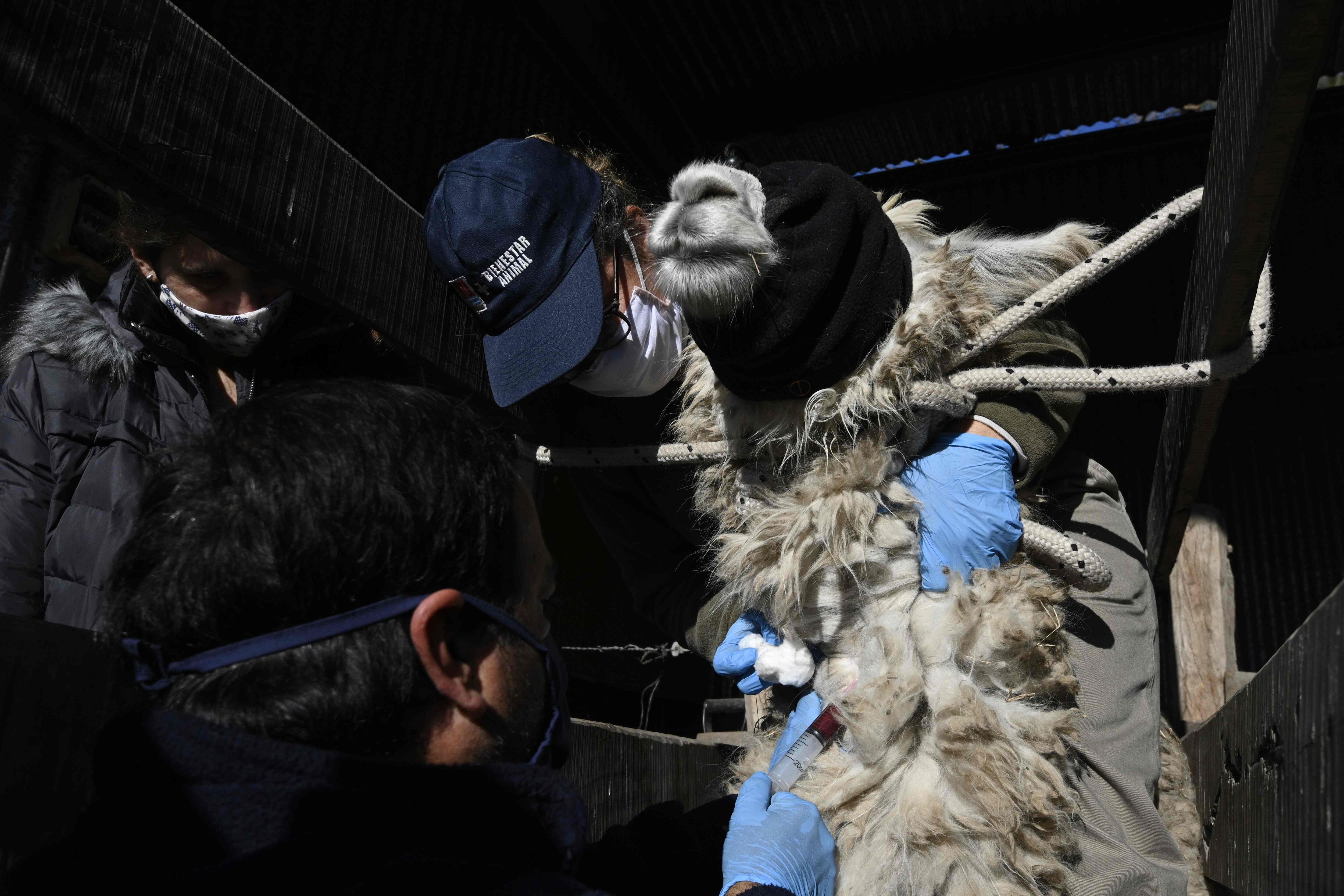 En Castelar, a 40 km al oeste de Buenos Aires, un corral alberga a las cinco llamas jóvenes que sirven al experimento. Allí las mantienen entre algodones porque el estrés impacta en el sistema inmunológico, igual que en humanos.