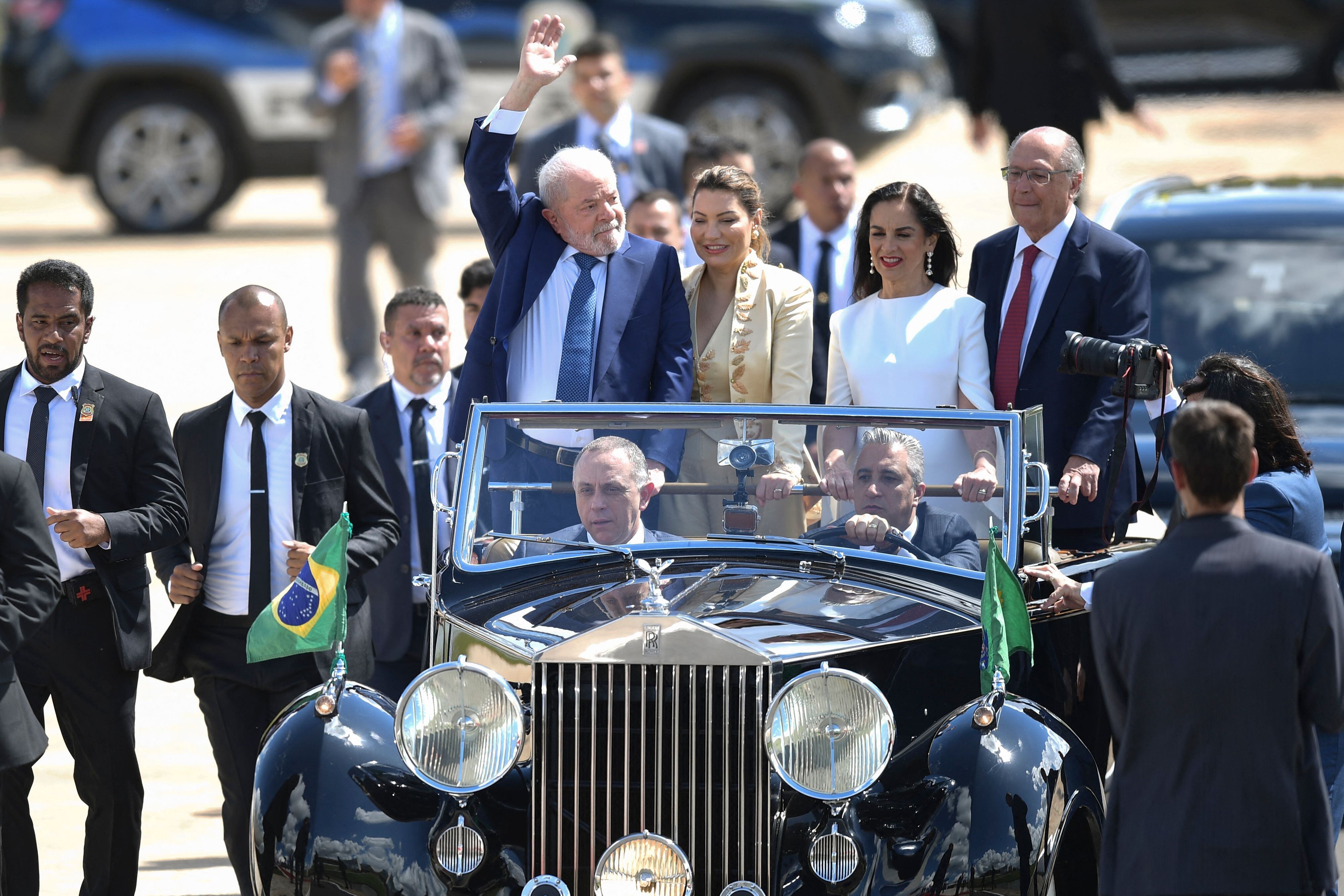 Al Congreso, Lula llegó con el tradicional Rolls Royce negro descapotable junto a la primera dama “Janja”, ante los vítores de sus seguidores, algunos de ellos con lágrimas en los ojos, constató la AFP.