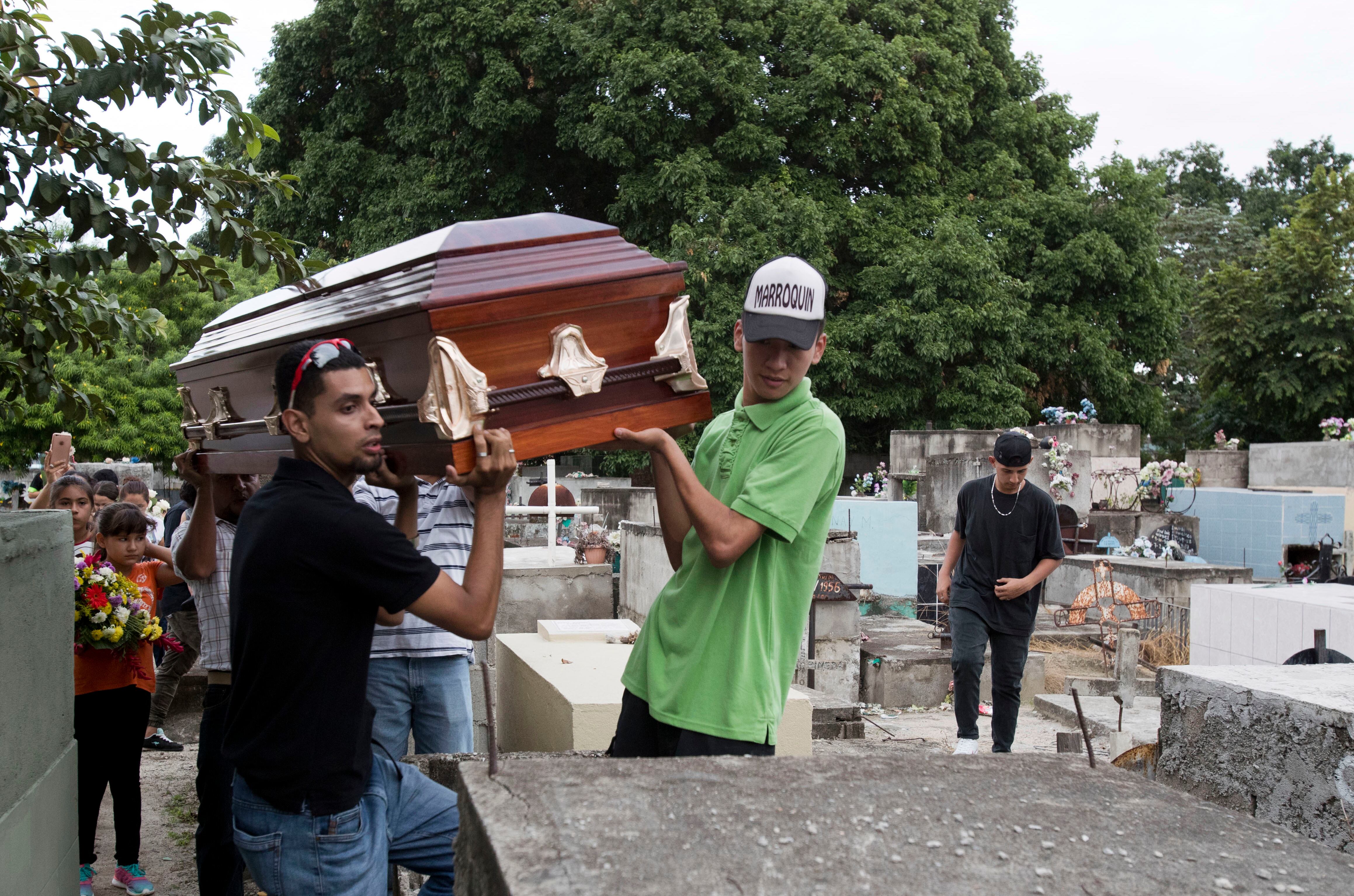 El último viaje de los restos de Wilmer Gerardo Núñez fue a hombros de familiares y amigos que debieron trepar, bajar y esquivar tumbas hasta llegar a la señalada. Quedó sepultado sobre su primo, mientras media docena de celulares grababan o retransmitían el momento a través de Facebook para los familiares que emigraron y ahora viven en Estados Unidos.