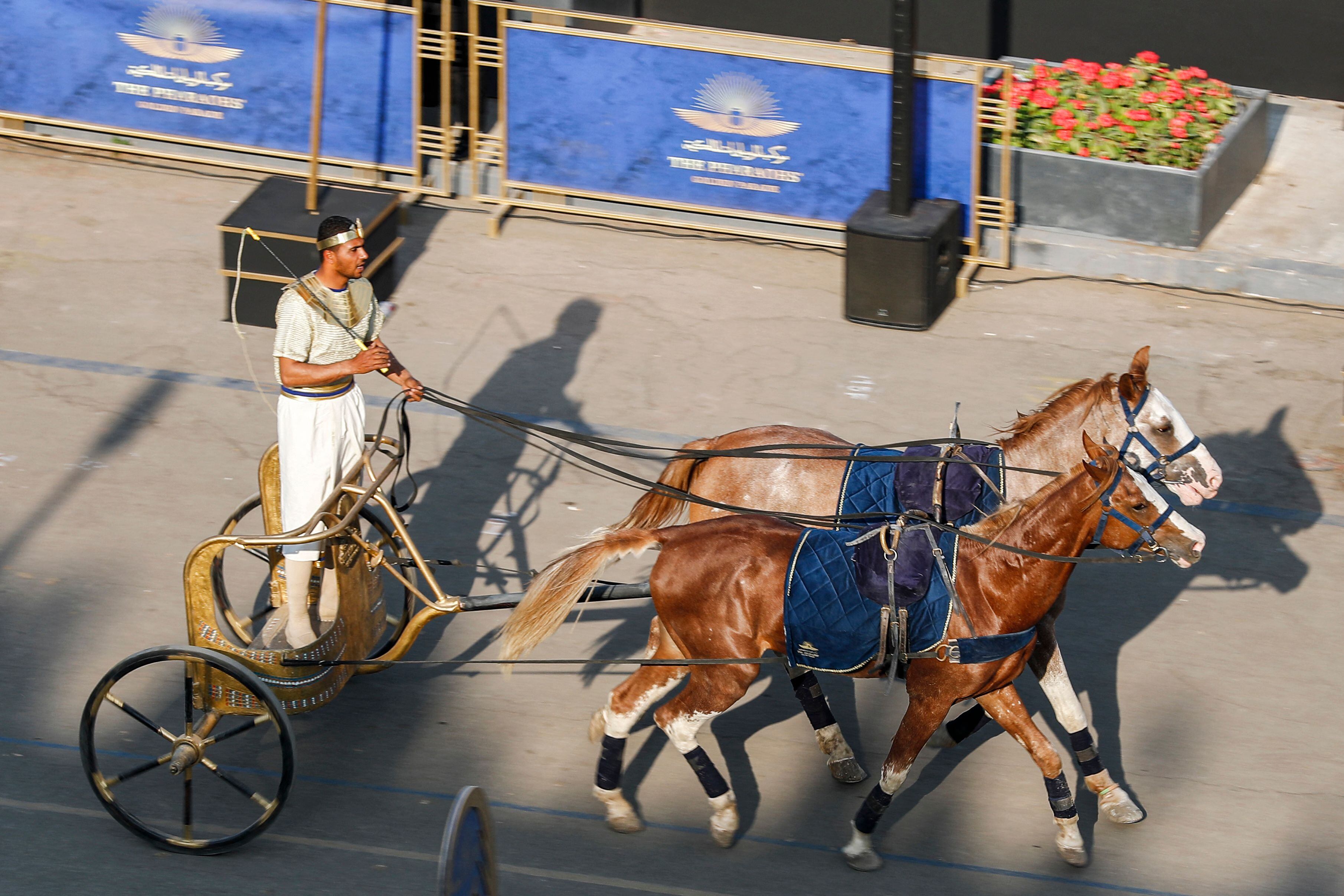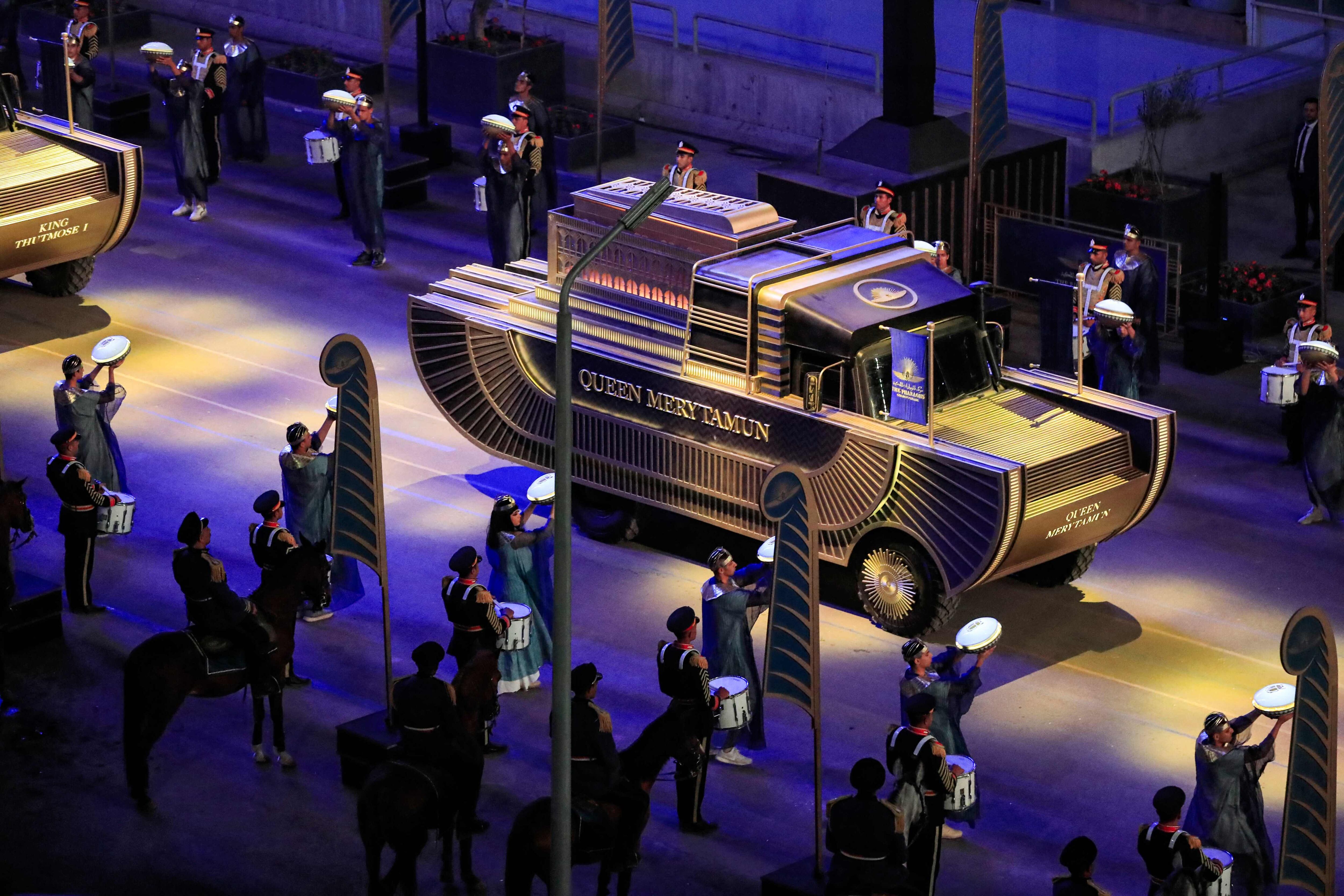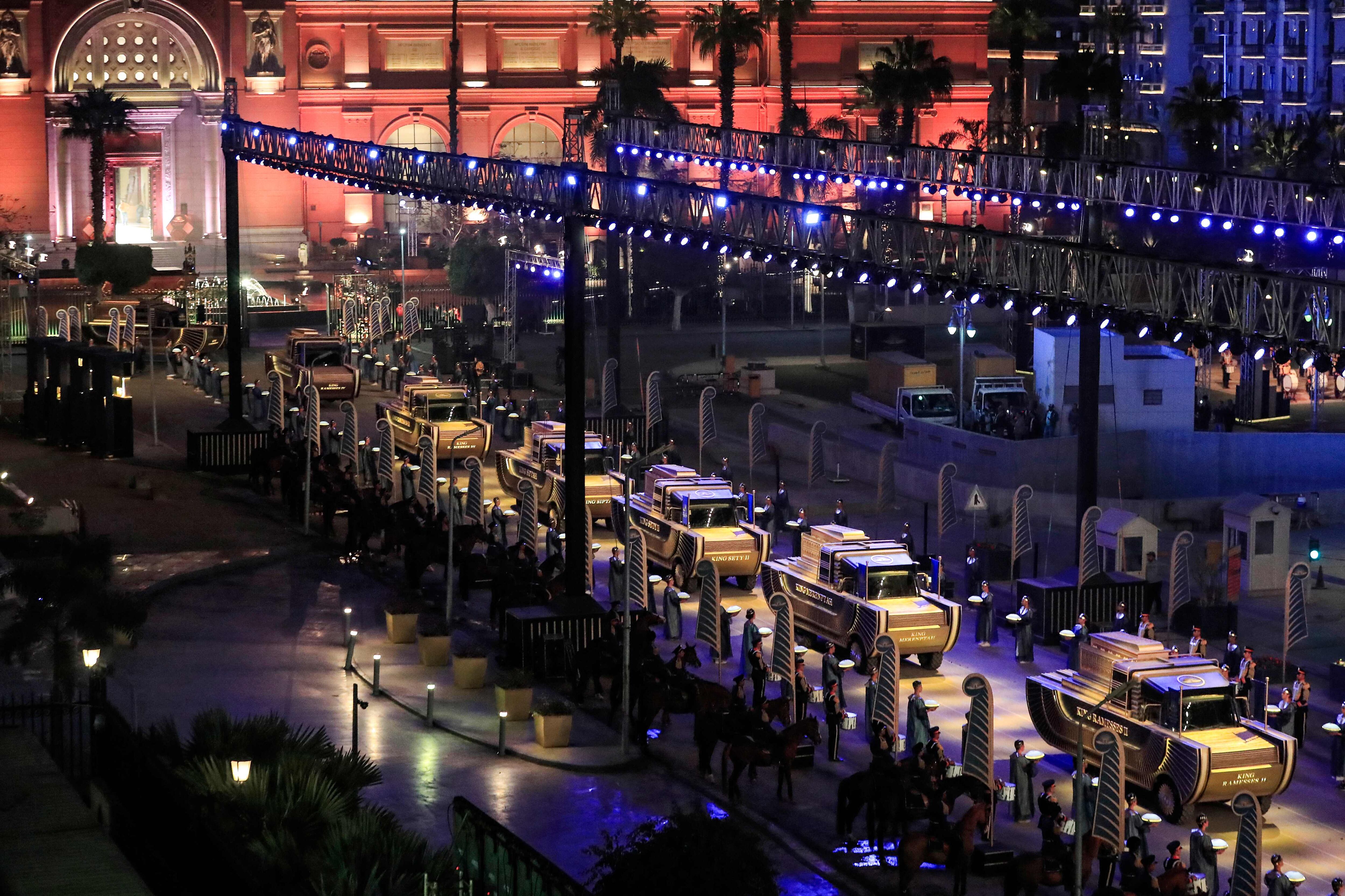 Los egipcios pudieron seguir a través de la televisión estatal el desfile de los 18 reyes y cuatro reinas, que contó con una ceremonia de apertura cuidadosamente coreografiada.