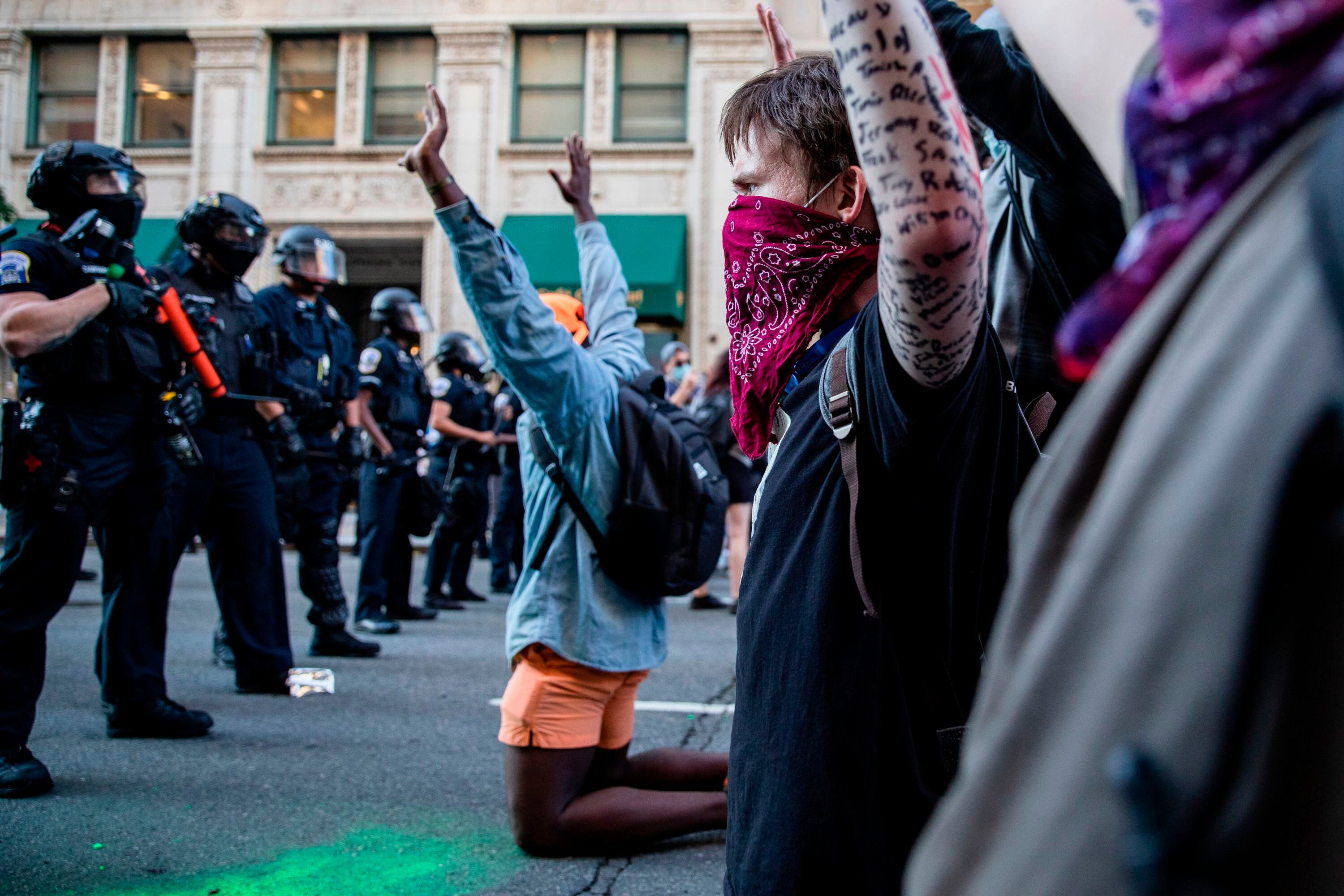 En la capital Washington, se registraron disturbios en las inmediaciones de la Casa Blanca con algunos destrozos, fuegos encendidos por los manifestantes, banderas estadounidenses en llamas y muros pintados con consignas contra la policía.
