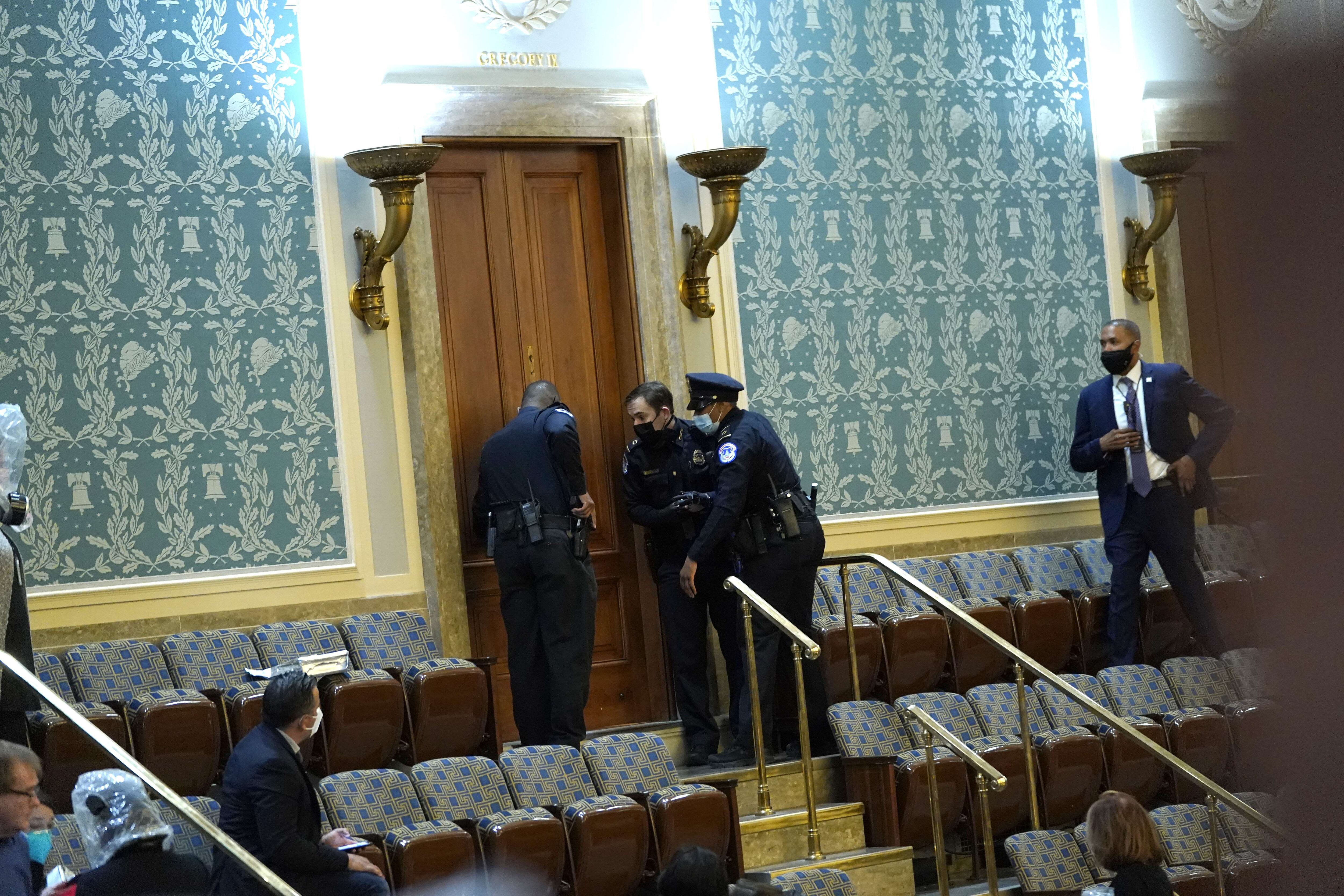 Funcionarios del Capitolio declararon un cierre de las instalaciones, y legisladores dijeron en Twitter que se estaban refugiando en sus oficinas, mientras se veía a los manifestantes, algunos de ellos con banderas de Trump, caminando por el edificio.