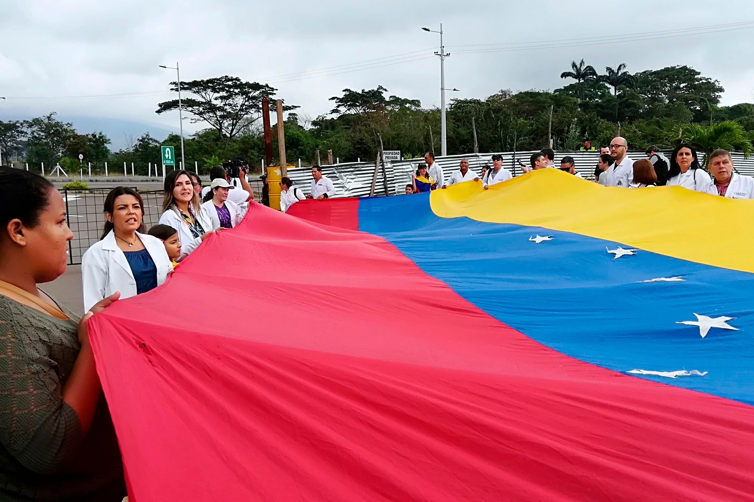 Más de medio centenar de médicos venezolanos cruzaron este domingo la frontera con Colombia en una manifestación para exigir el ingreso de ayuda humanitaria solicitada por el opositor Juan Guaidó, reconocido por medio centenar de países como presidente interino de Venezuela.
