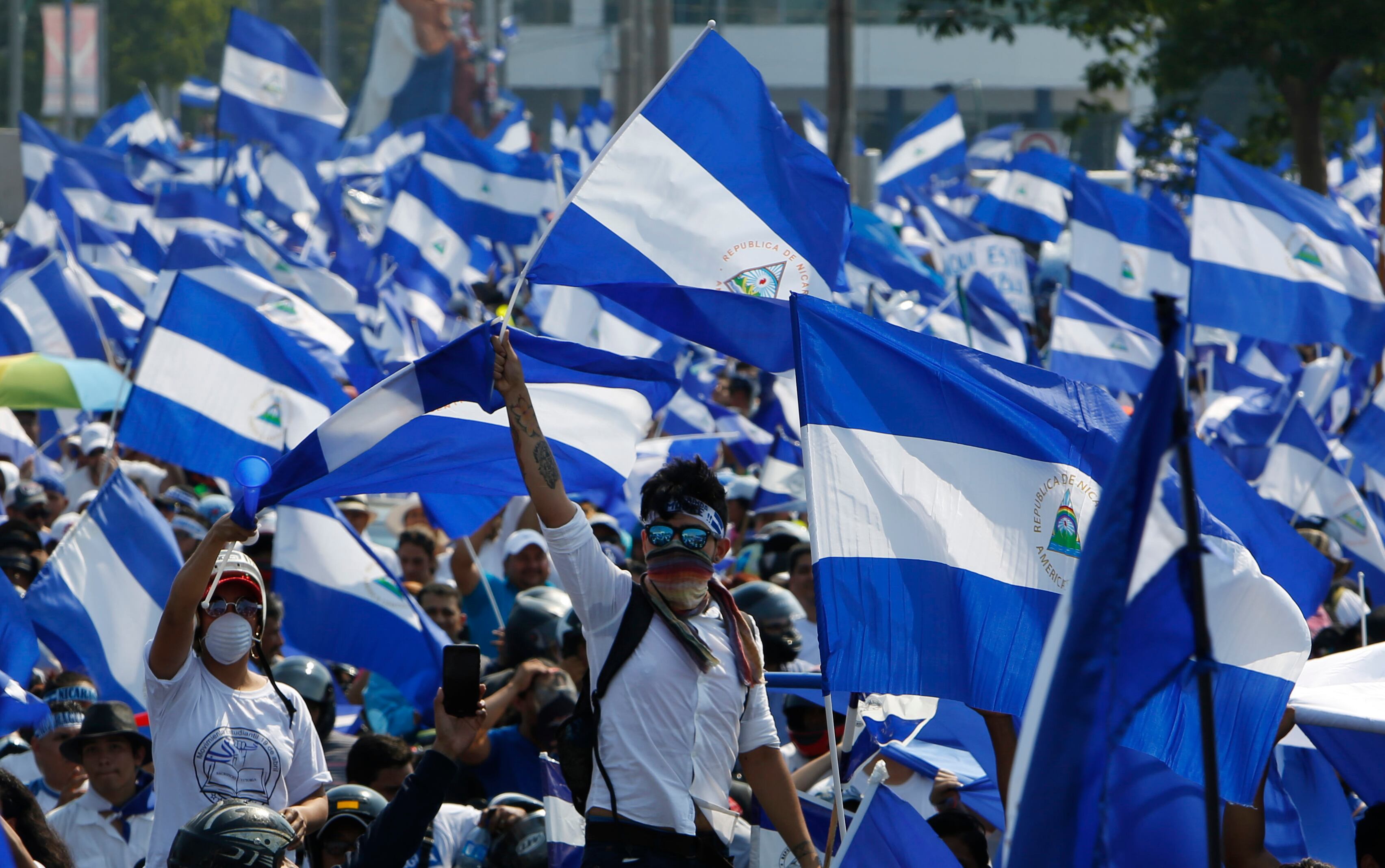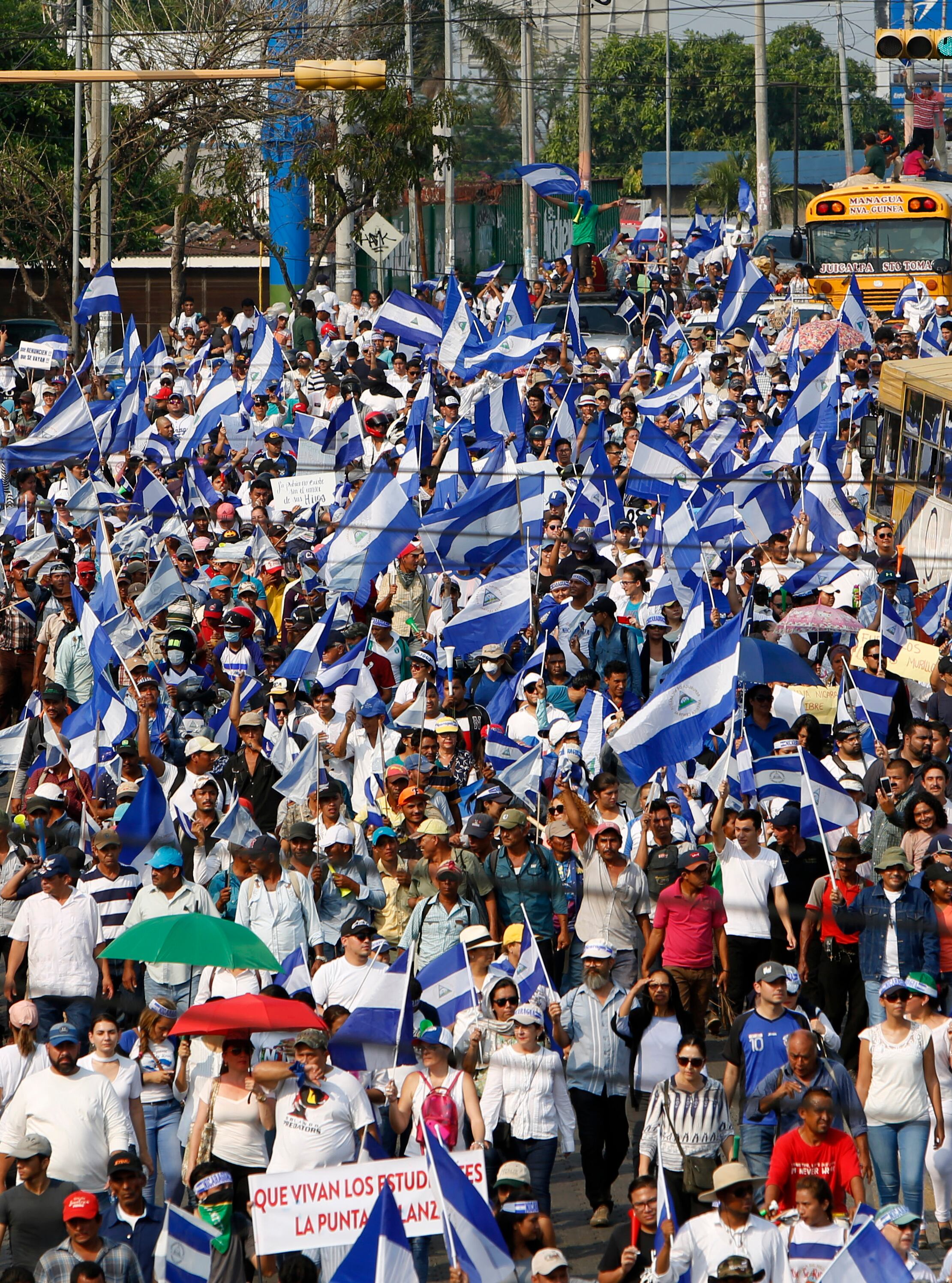 Estudiantes, campesinos, empresarios y otros sectores de la sociedad civil se movilizaron en el centro de Managua en la tercera manifestación multitudinaria en menos de tres semanas. Las protestas se desataron tras anunciarse una reforma al seguro social que posteriormente fue revertida, pero antes fallecieron 63 personas, la mayoría entre el 18 y el 22 de abril, según organismos defensores de los derechos humanos.