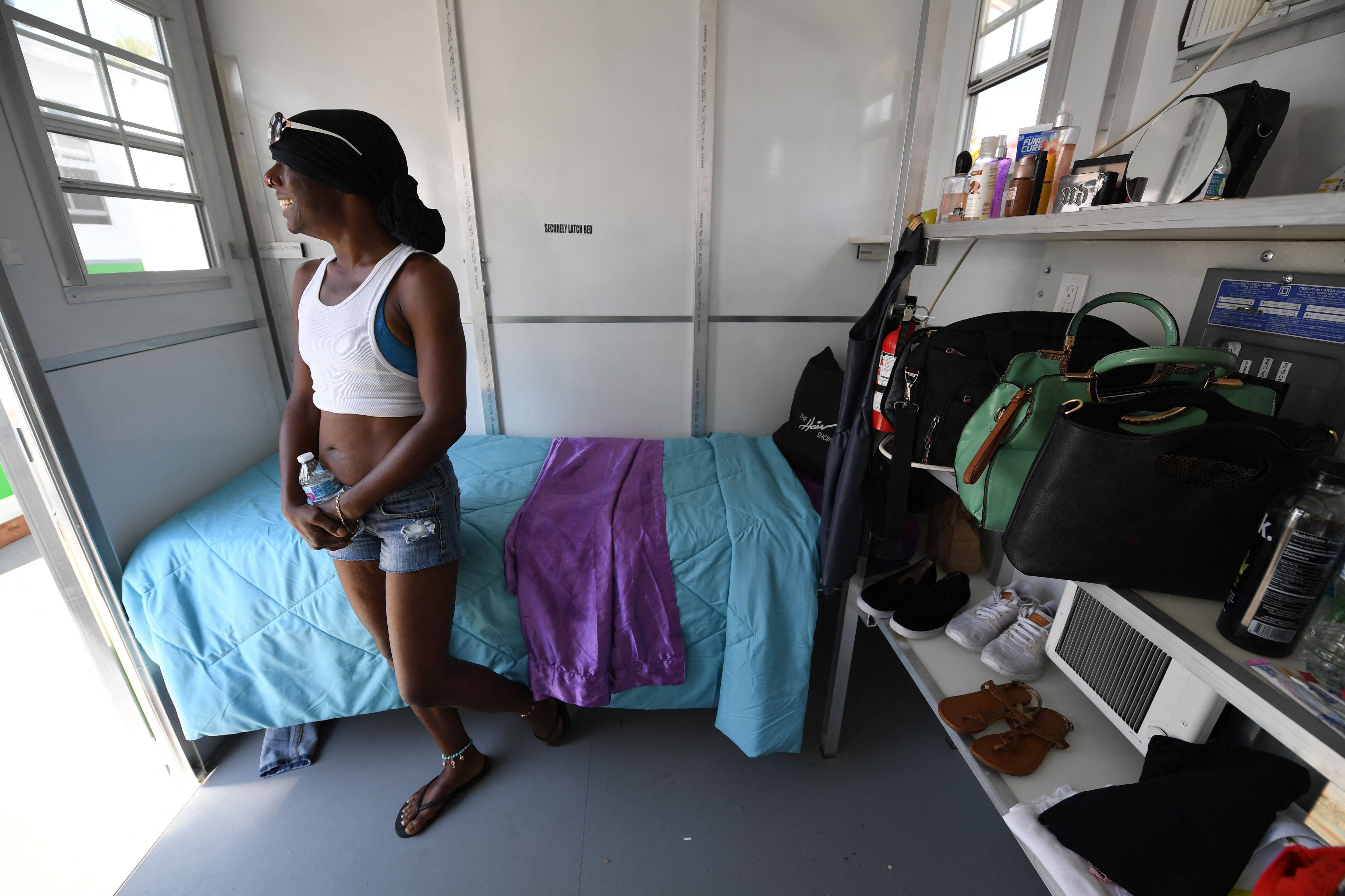 Zuri-Kinshasa María Terry, de 46 años, acaba de instalarse en el lugar. Esta exdesnudista dice que terminó en la calle hace un año después de estar dos semanas en cuidados intensivos por covid-19.