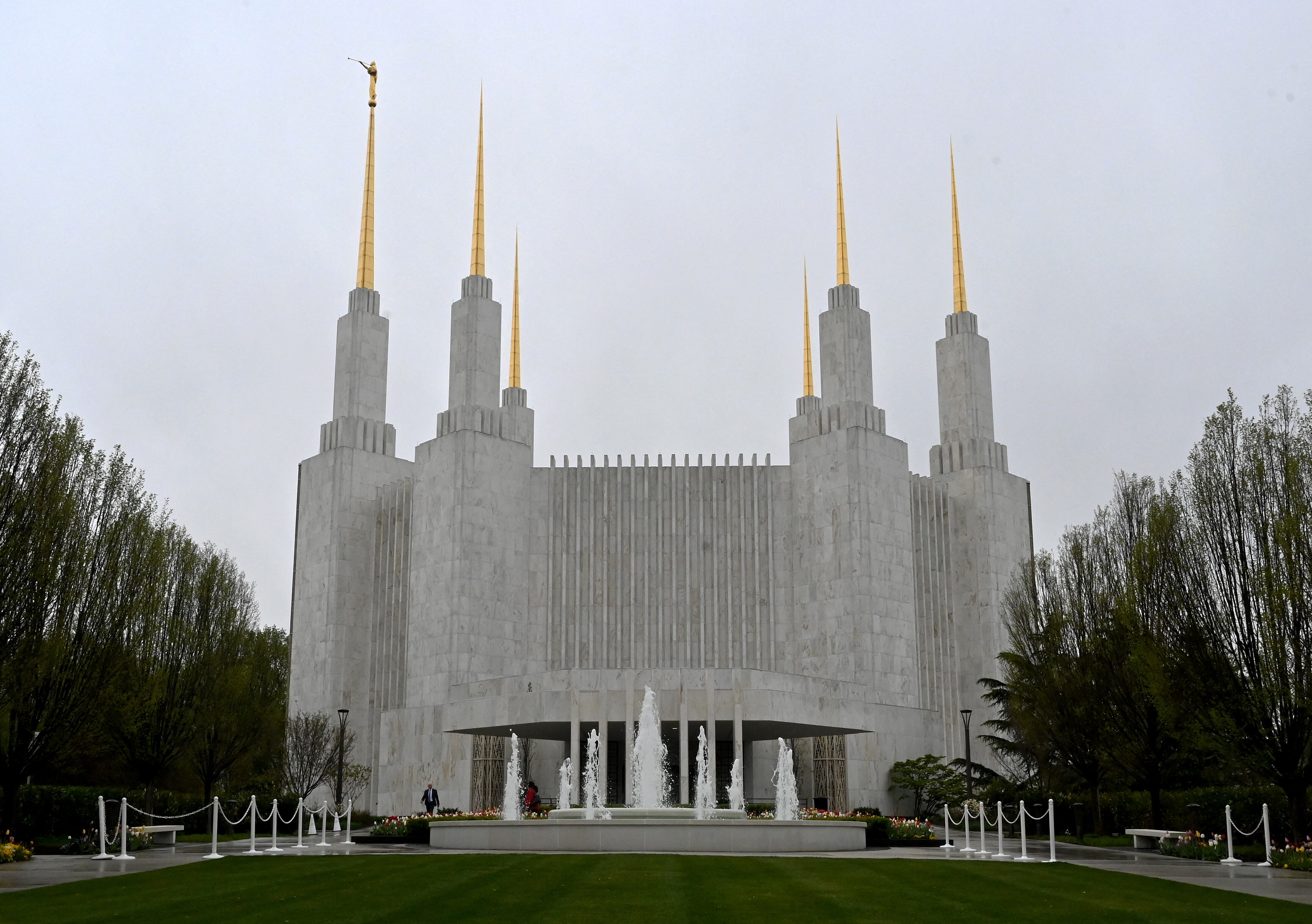 Como si viniera de una novela de ciencia ficción, con sus seis agujas doradas y paredes blancas elevándose sobre los árboles cercanos, el templo mormón de Washington ha intrigado por décadas a los que tienen prohibida la entrada.