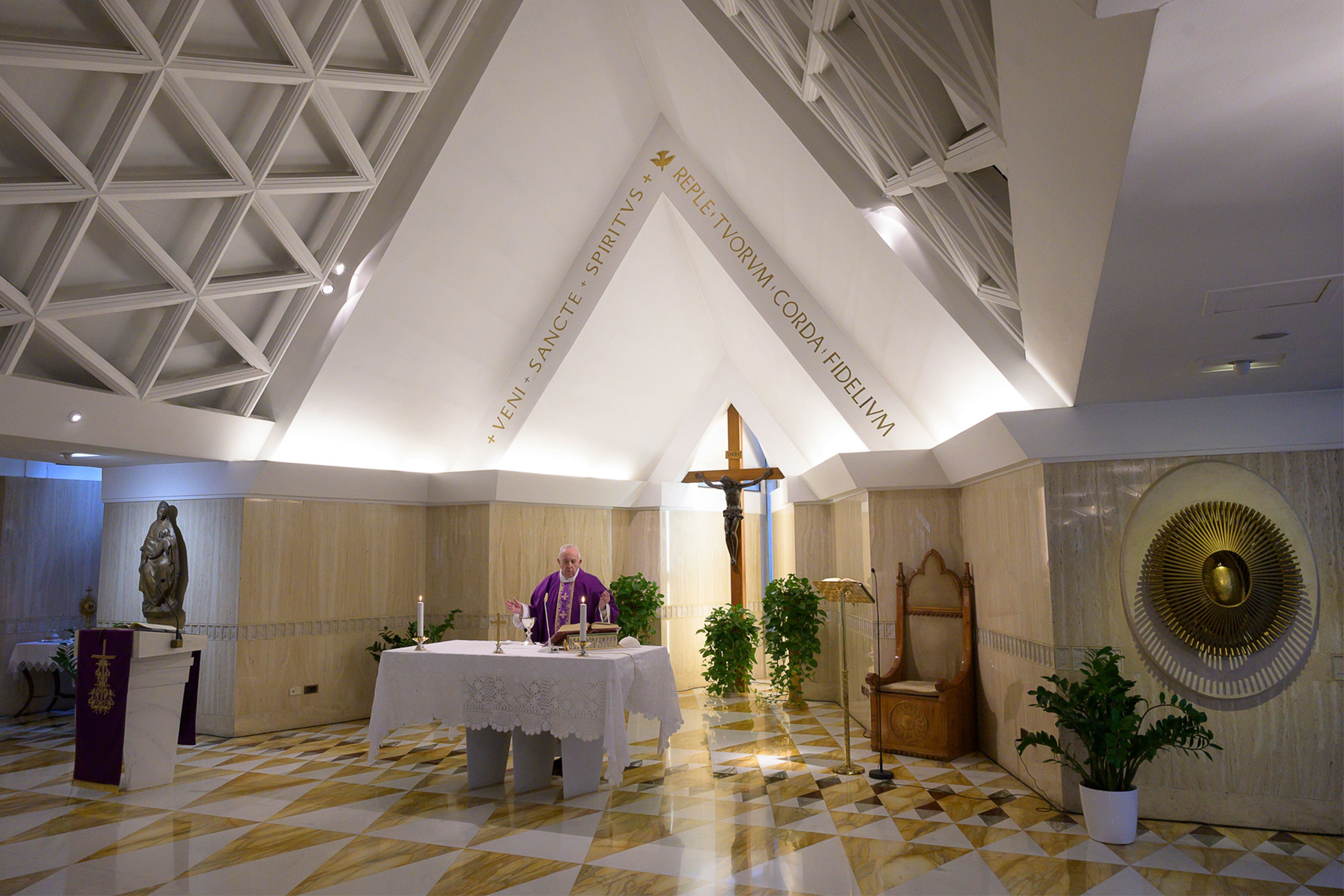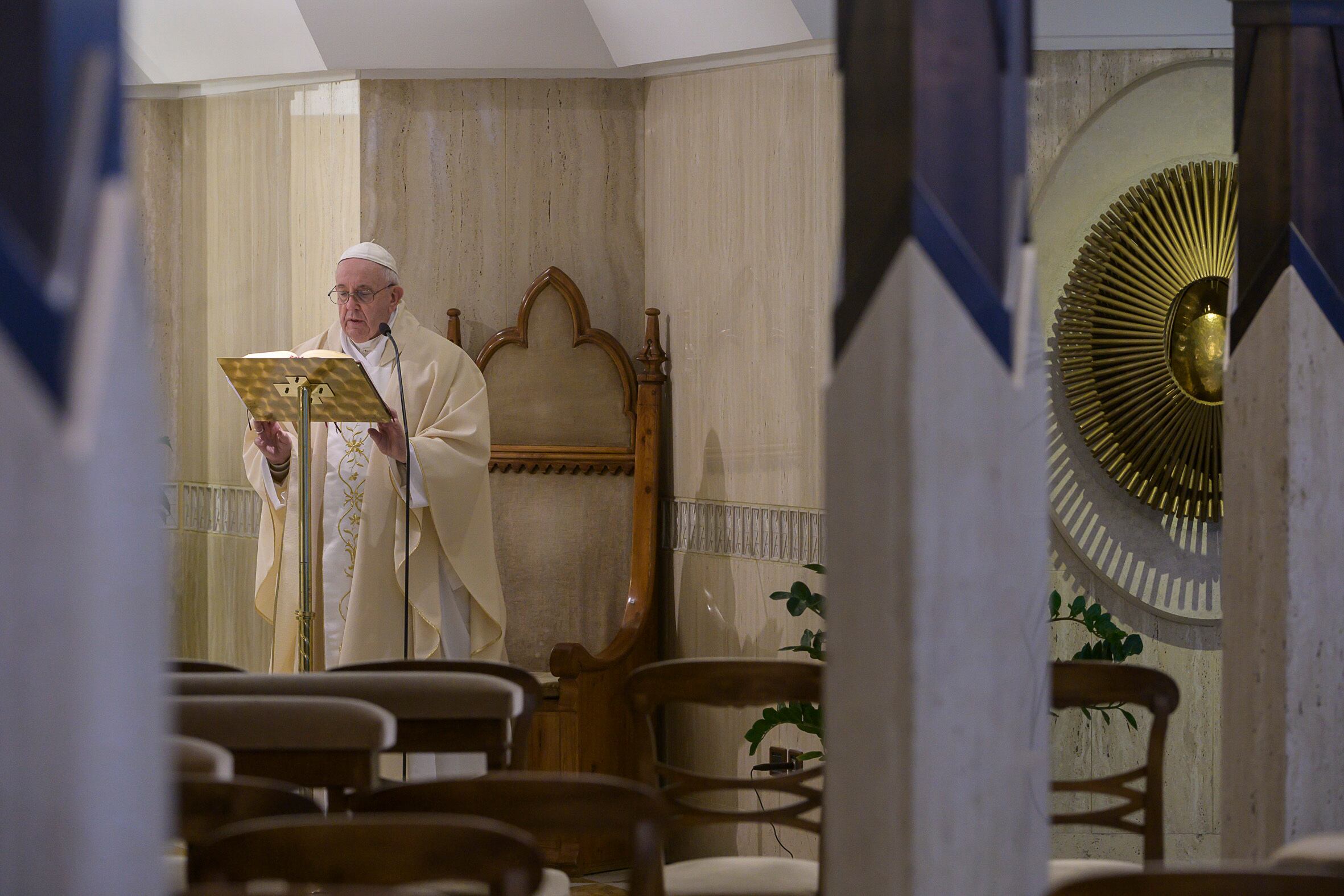 Sin embargo ahora el Papa se dirige a los fieles por vídeo: celebra misa a diario desde la pequeña capilla de la residencia de Santa Ana o les habla desde su biblioteca privada en el Palacio Apostólico.