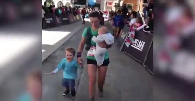 Pero esta británica, de 36 años, le añadió una dificultad más a la prueba: hizo un alto en el camino para amamantar a Cormac, su bebé de tres meses.