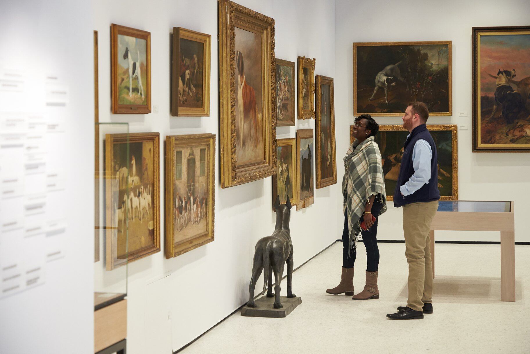 Las obras, expuestas en un edificio de Park Avenue, reflejan las grandes tendencias de la pintura canina, por ejemplo las de antes de la era victoriana (finales de 1800 e inicios de 1900) destacan el lado salvaje y agresivo del animal. También se ve que para el siglo pasado, la fotografía eclipsa a la pintura, especialmente como los retratos de perros estrellas del cine arte como Lassie.