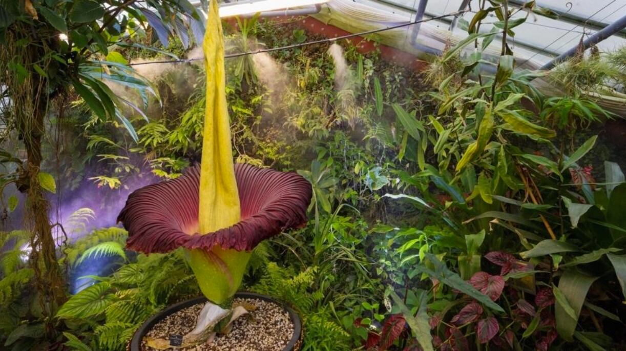 La floración del Amorphophallus titanum es un acontecimiento poco frecuente. La flor más grande del mundo ha florecido cerca de la ciudad francesa de Nancy esta semana, por un máximo de 72 horas. Mide casi dos metros de altura y pesa 33 kilos.