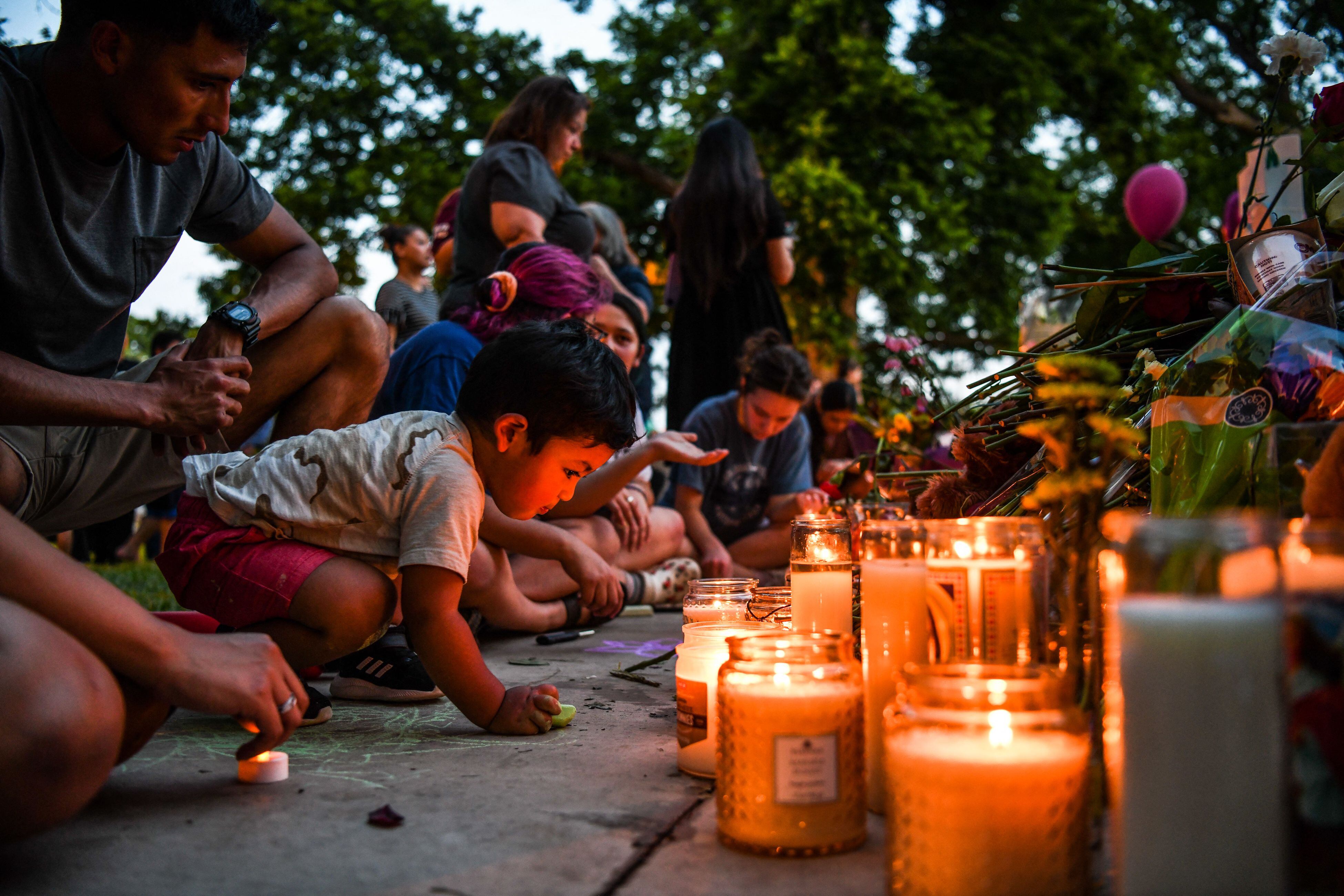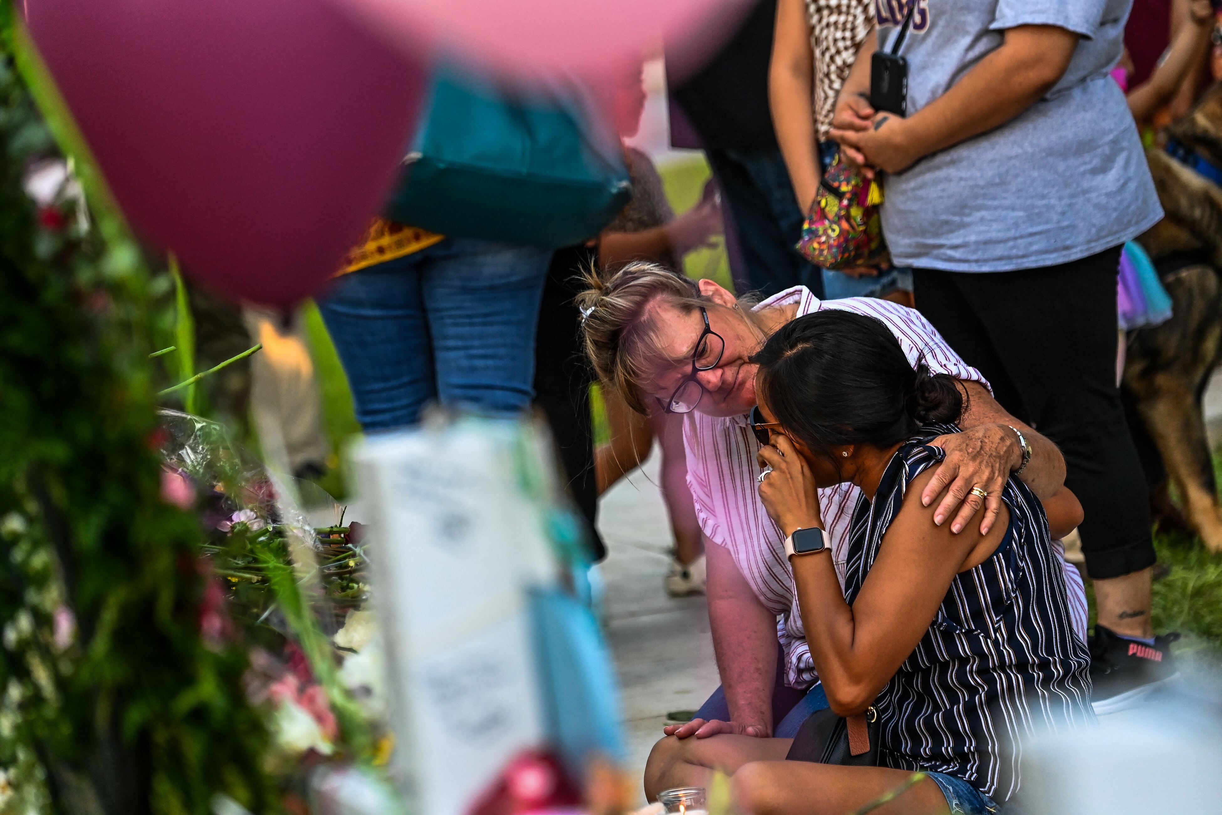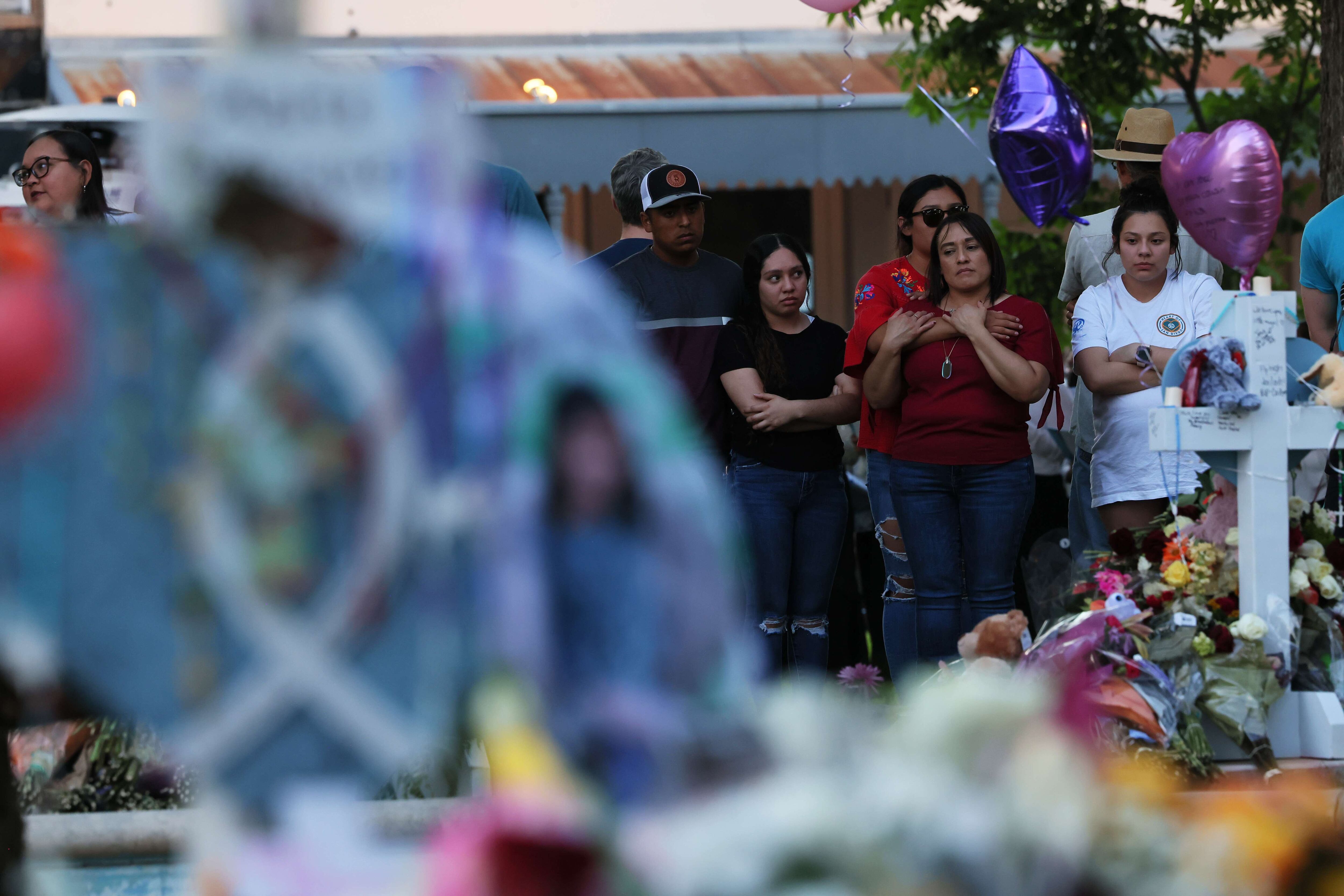 En Uvalde, varias decenas de personas se concentraron el sábado por la mañana en la plaza central, que se ha convertido en un lugar de homenaje a las víctimas. En las 21 cruces que ahora están allí, una para cada víctima, hay carteles que rezan “Te amo” o “Te extraño”, en tanto muchas personas dejaban peluches o flores en tributo.