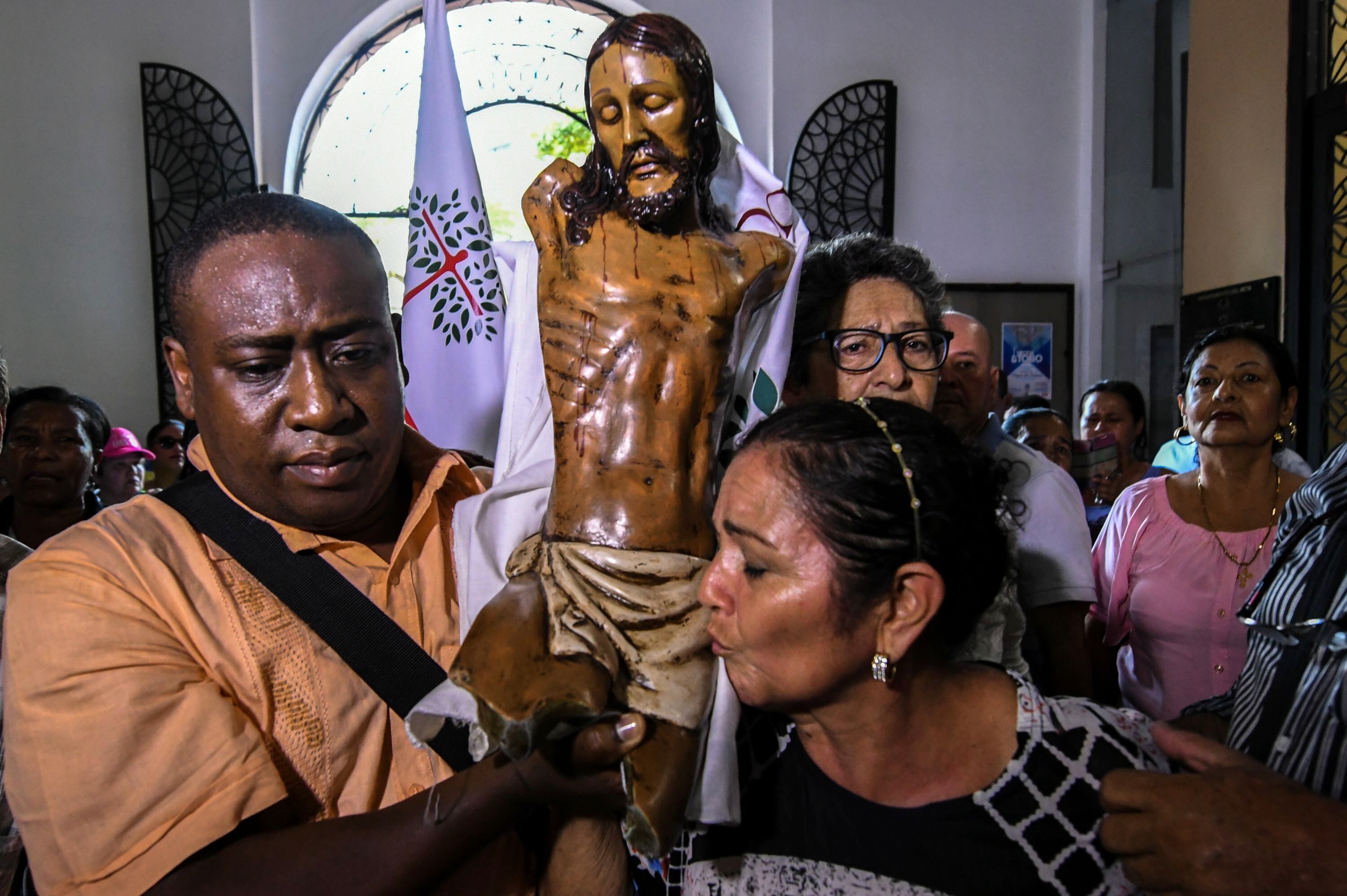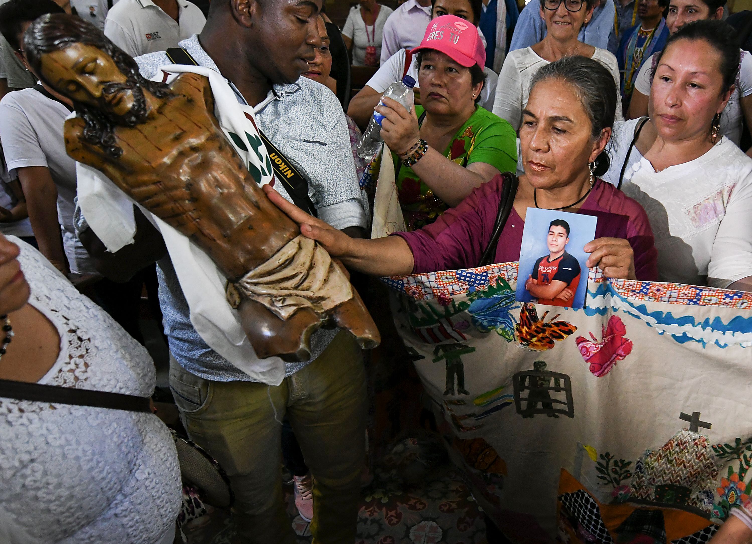 “Que el santo papa bendiga al Cristo yo creo que es darnos más fuerza a nosotros y al Cristo para seguir luchando (...) Nosotras seguiremos cantando hasta que diga el mundo entero ya no más”, apuntó Ereiza Mosquera, una cantaora, de 59 años, que perdió amigos y conocidos en la masacre.