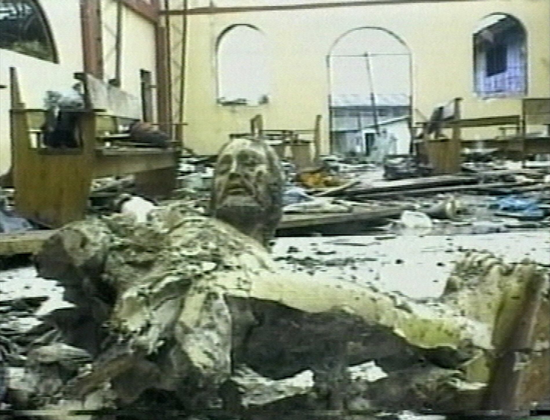 Cañola y varios sobrevivientes tardaron tres días en trasladar desde esa región hasta Villavicencio (centro) al Cristo que estaba en el templo y cuya figura quedó mutilada, tras el ataque de las FARC, convertidas en partido político tras firmar la paz en noviembre.