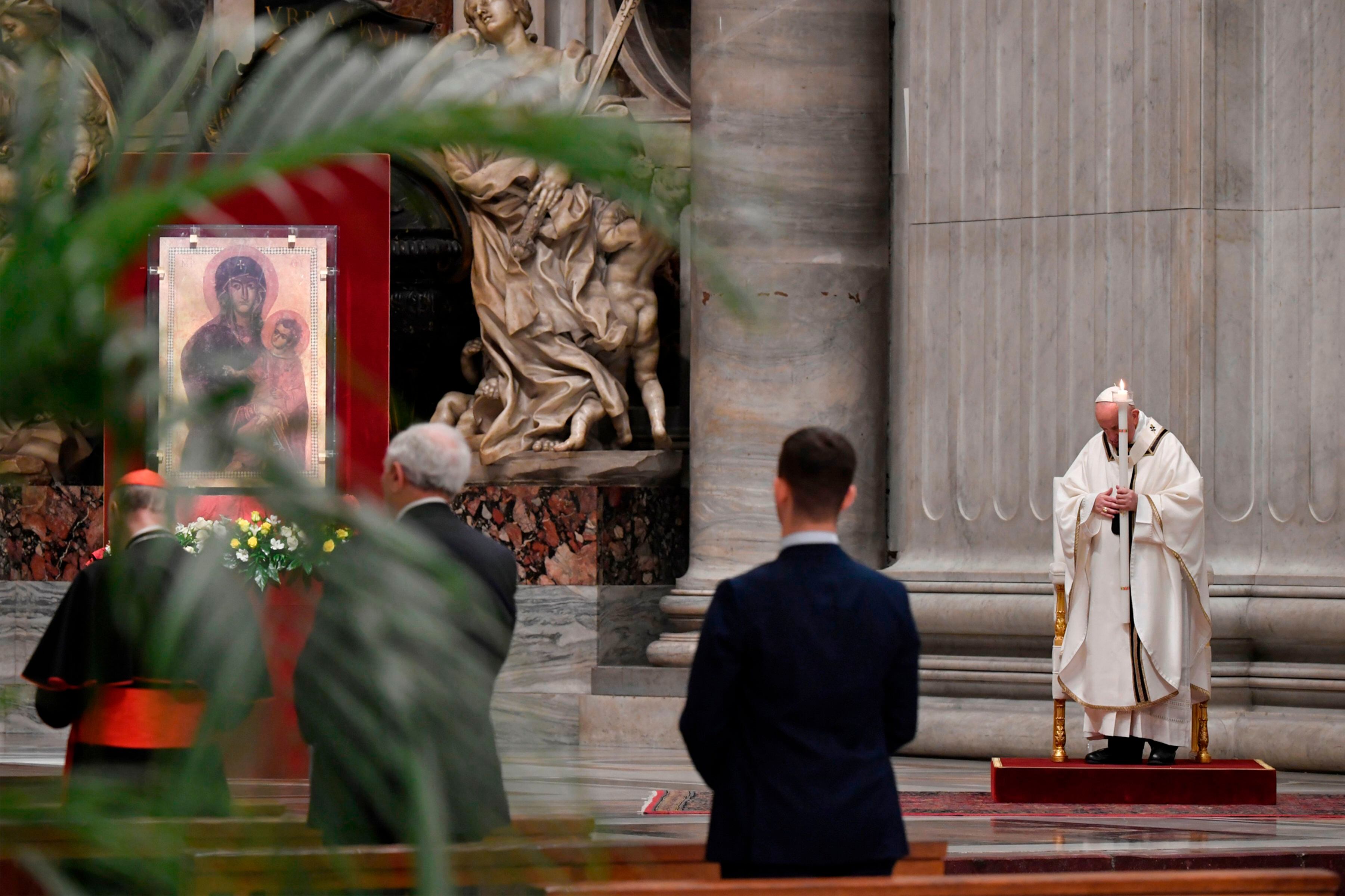 La pandemia del coronavirus también ha impedido la celebración de bautismos durante esta misa tradicional que recuerda la resurrección de Jesús.
