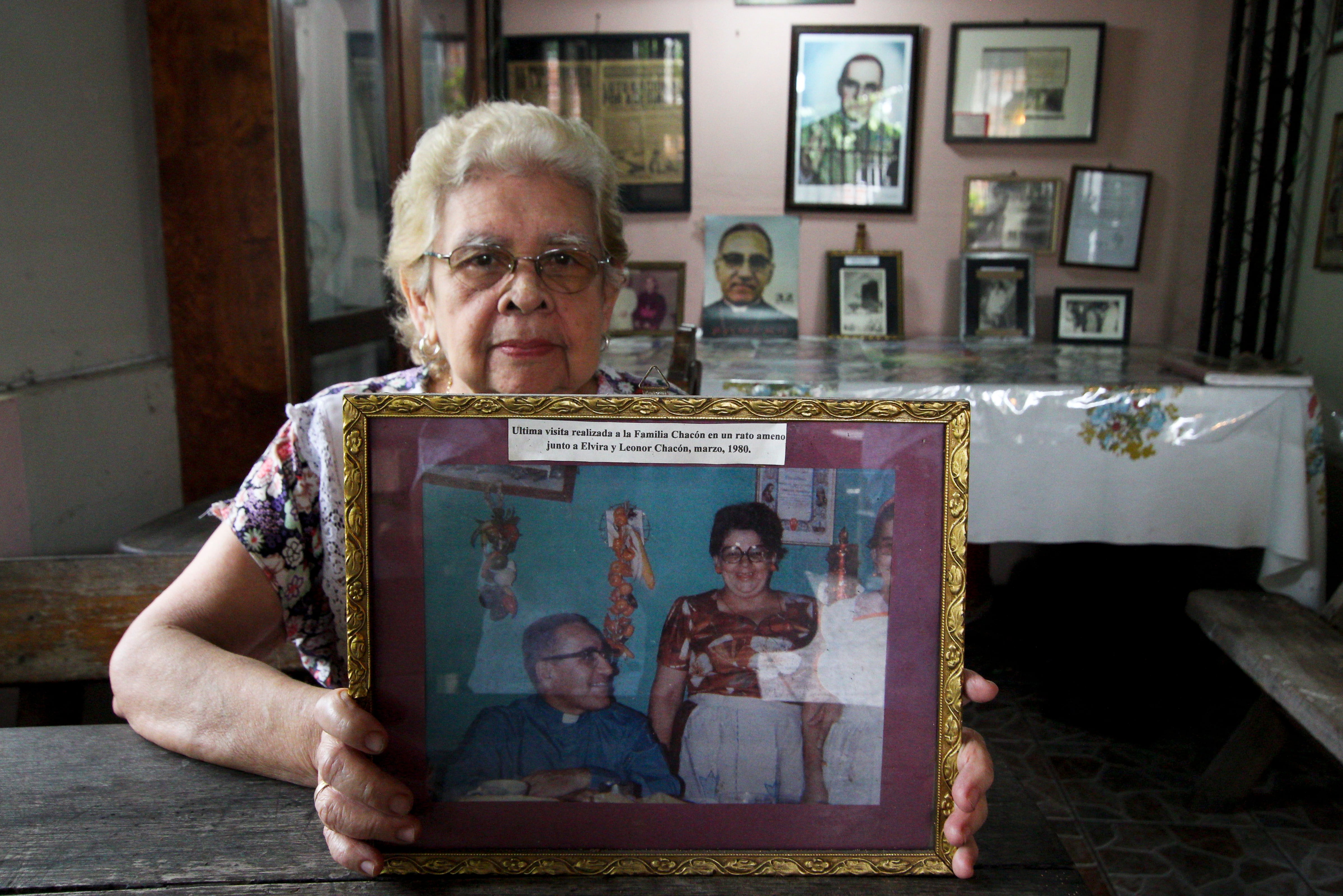 Chacón mantiene una colección de recuerdos de Romero –su sotana, una camisa, una postal que envió a la familia desde la Torre Latinoamericana de la Ciudad de México, en ese momento el rascacielos más alto de América Latina– y cientos de personas han venido a la casa para escucharla.