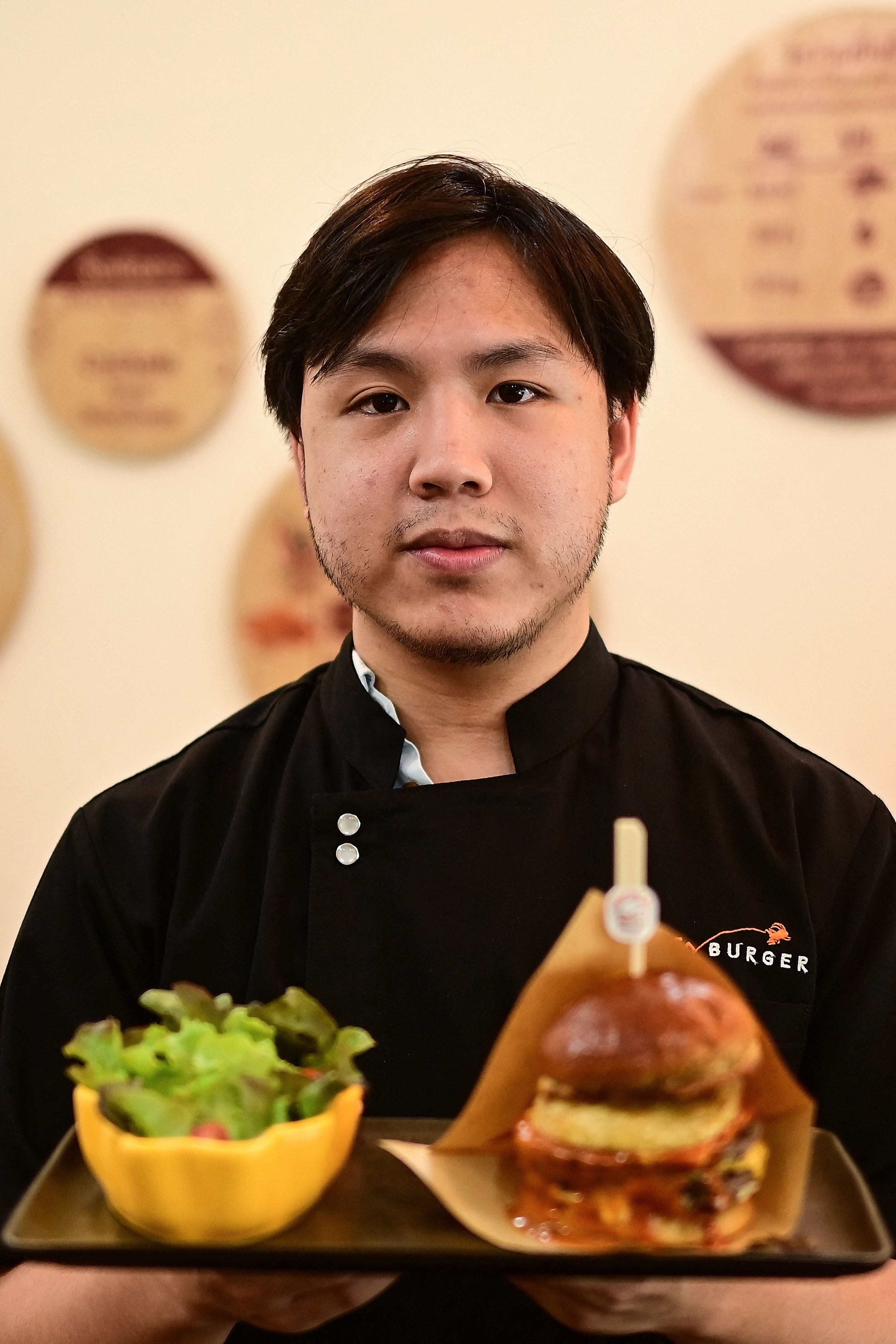 “Los grillos no tienen que estar solo en los puestos callejeros servidos con salsa de soja”, dice Poopipat Thiapairat, codueño de Bounce Burger.