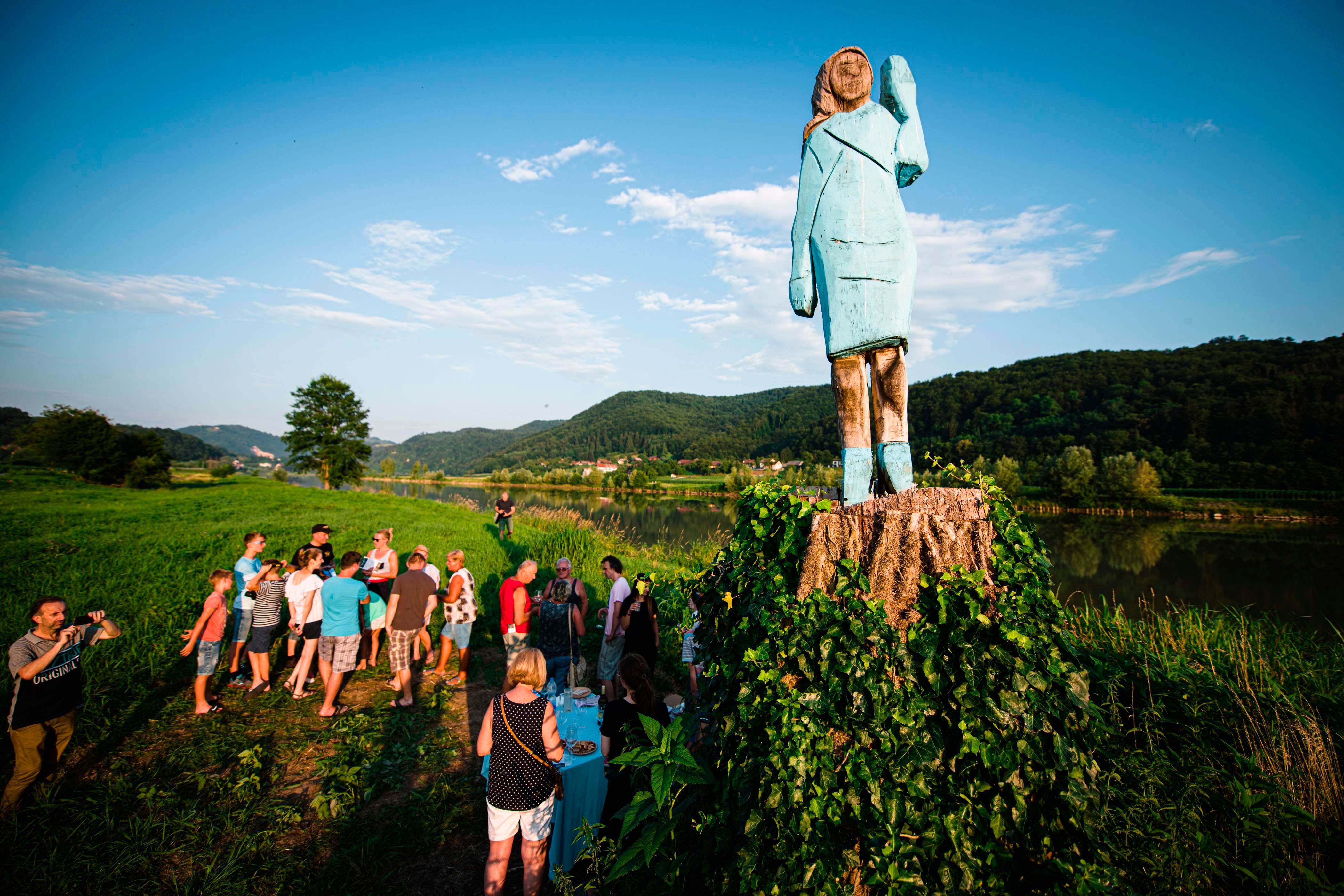 La estatua de tamaño natural en las afueras de Sevnica, Eslovenia, fue inaugurada el viernes y es obra del artista conceptual estadounidense de 39 años Brad Downey, quien asegura que es el primer monumento en el mundo dedicado a la esposa del presidente estadounidense Donald Trump.