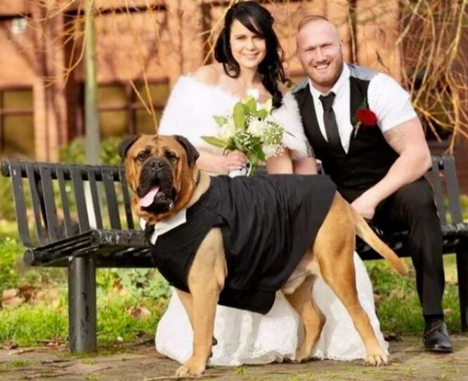 Estelle Harris, de 34 años y Danny, de 31, estaban listos para casarse, pero sucedió algo imprevisto. El perro de la novia, Bruce, comenzó a tener problemas de salud. El peludito, de raza bullmastiff, que Estelle describió como “su hijo con cuatro patas”, fue diagnosticado con un cáncer de sangre y le dieron de uno a cuatro meses de vida.