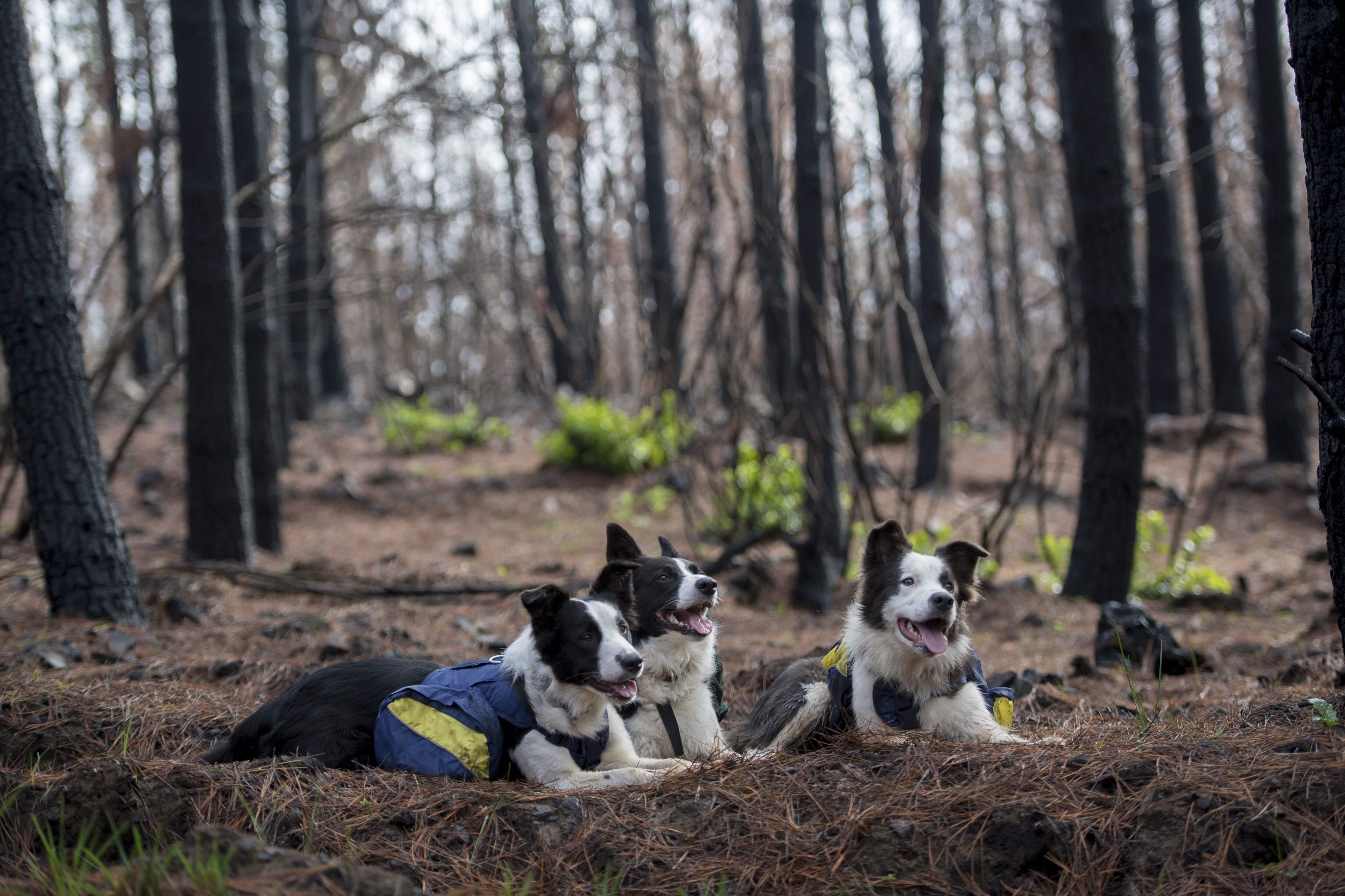 Pero desde marzo, los ladridos de tres Border Collie hembras devolvieron la esperanza a la zona, gracias a su minucioso trabajo para resembrar con semillas de árboles, pasto y flores, que una vez que germinen hagan retornar al bosque a las aves o animales salvajes que escaparon del fuego.