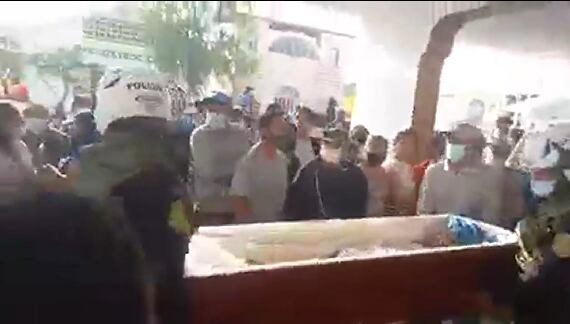 El hecho ocurrió en Lambayeque, al norte de Perú, y según publicó el medio local Diario Correo, fue exactamente cuando había llegado el cortejo fúnebre con los familiares de la mujer.