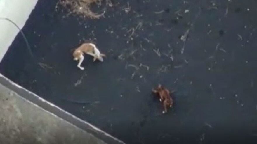 Los perros encontraron refugio en dos depósitos de agua vacíos rodeados de lava en la localidad de Todoque, que fue prácticamente borrada del mapa por la erupción del volcán Cumbre Vieja que empezó el 19 de setiembre.