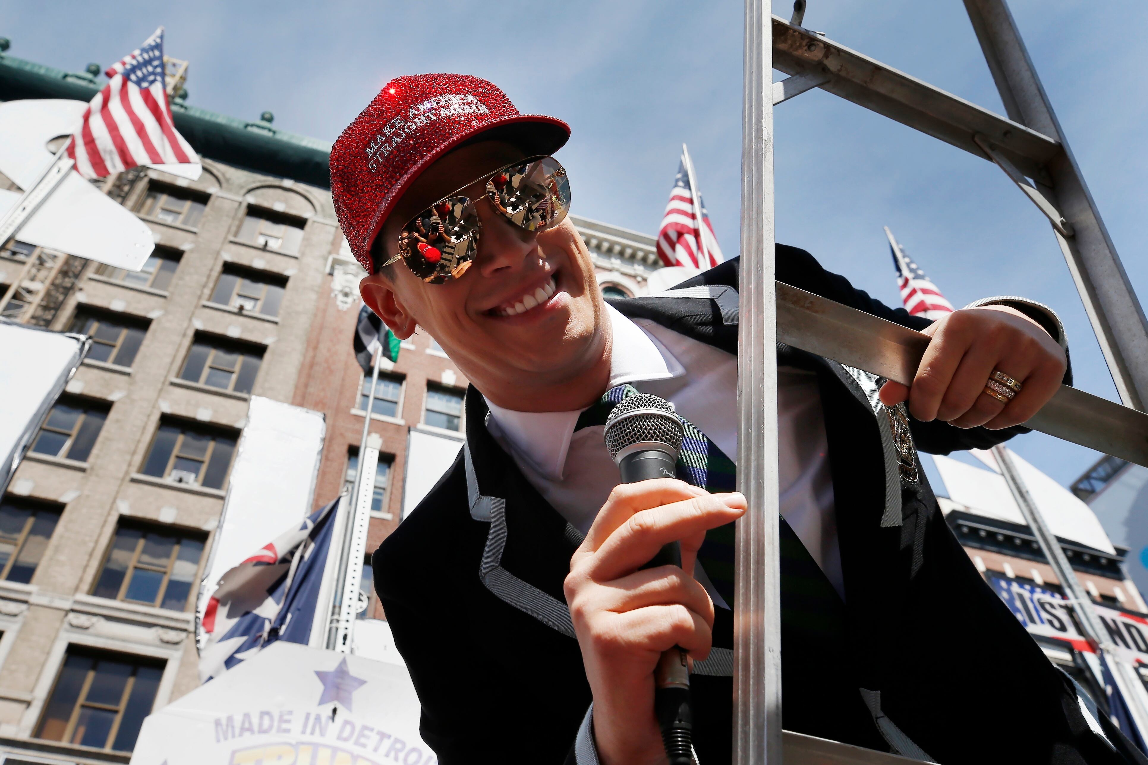 El líder del desfile fue Milo Yiannopoulos, un prominente y provocador miembro del movimiento de ultraderecha que ha sido expulsado de varios sitios de redes sociales, pese a qué también es gay.