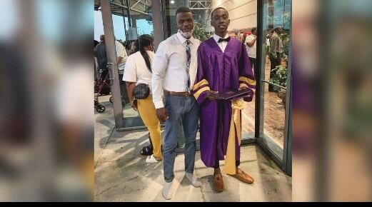Aquí está la parte divertida cuenta el profesor: “Mis zapatos eran dos tallas más grandes que los de él, así que cuando lo llamaron, tuvo que deslizar los pies por el escenario para recibir su diploma, nos reimos mucho”.