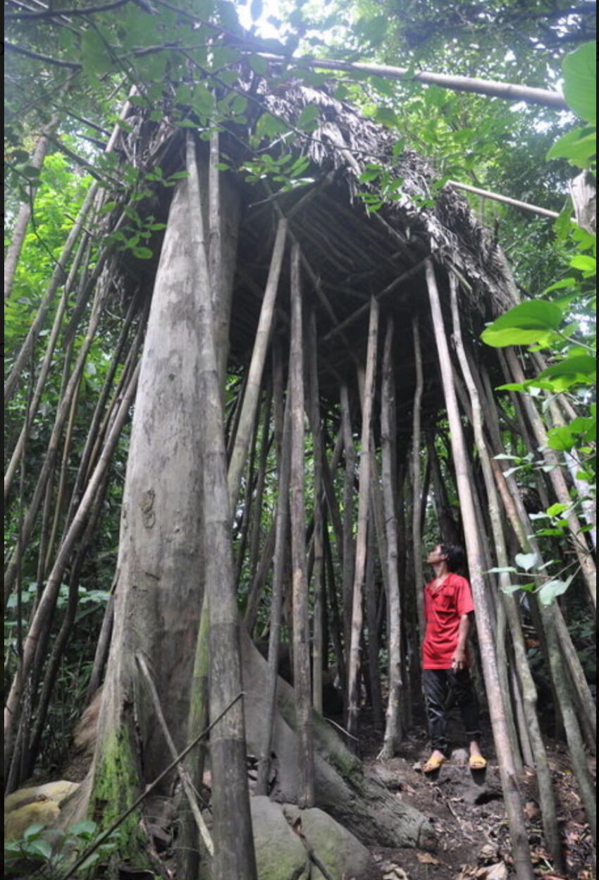 En lo alto de un árbol paraguas (schefflera arboricola), el hombre construyó una “casa del árbol“, similar a un nido de pájaros. De acuerdo con crónicas locales, la casa media 4 metros cuadrados. El objetivo era protegerse contra los animales salvajes que los rodeaban.
