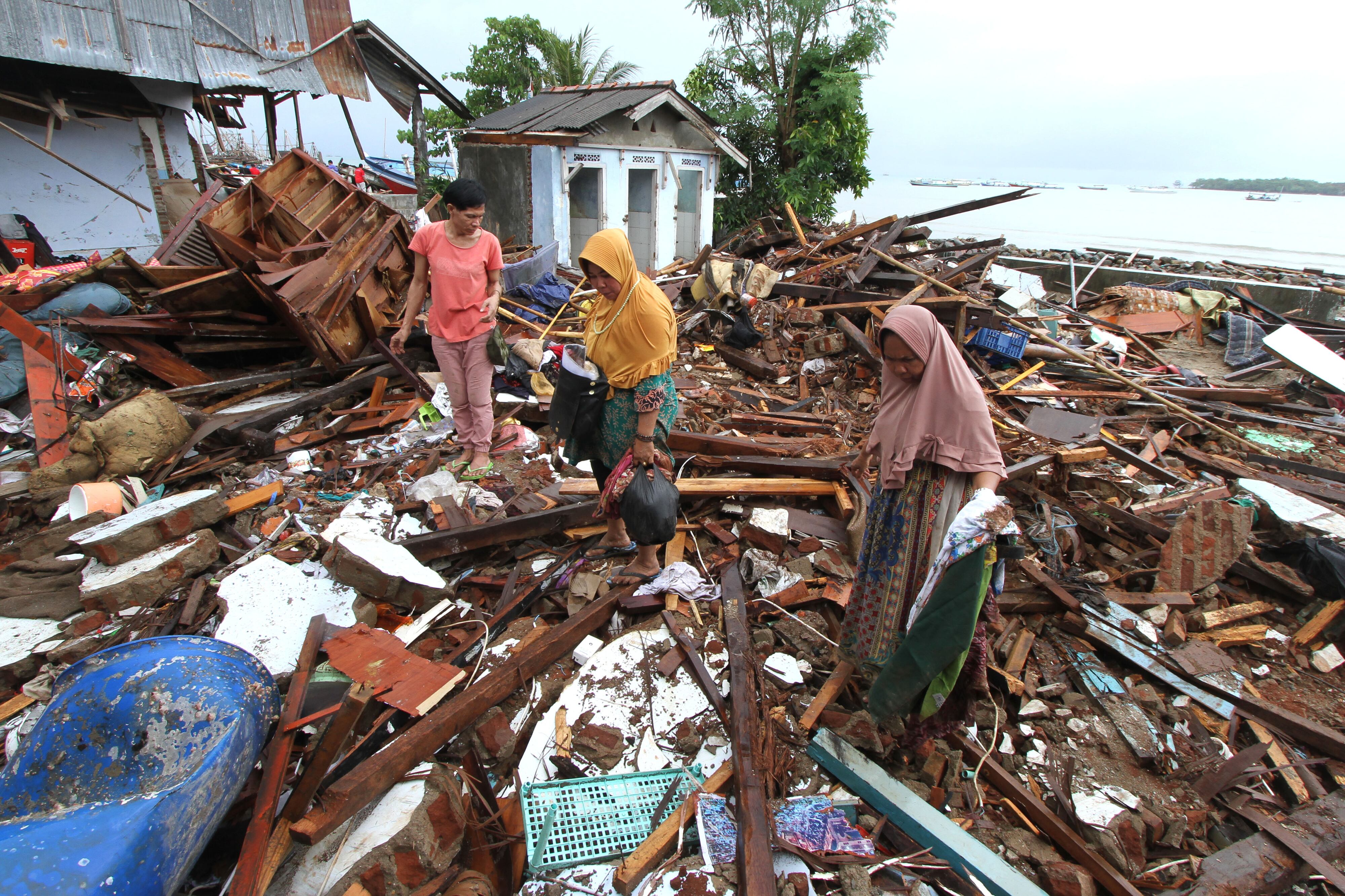 De otro lado del Estrecho de la Sonda, en la isla de Java, Saki, de 60 años, observa los escombros de la aldea de Sumber Jaya y se pregunta cómo va a hacer para volver a la normalidad.