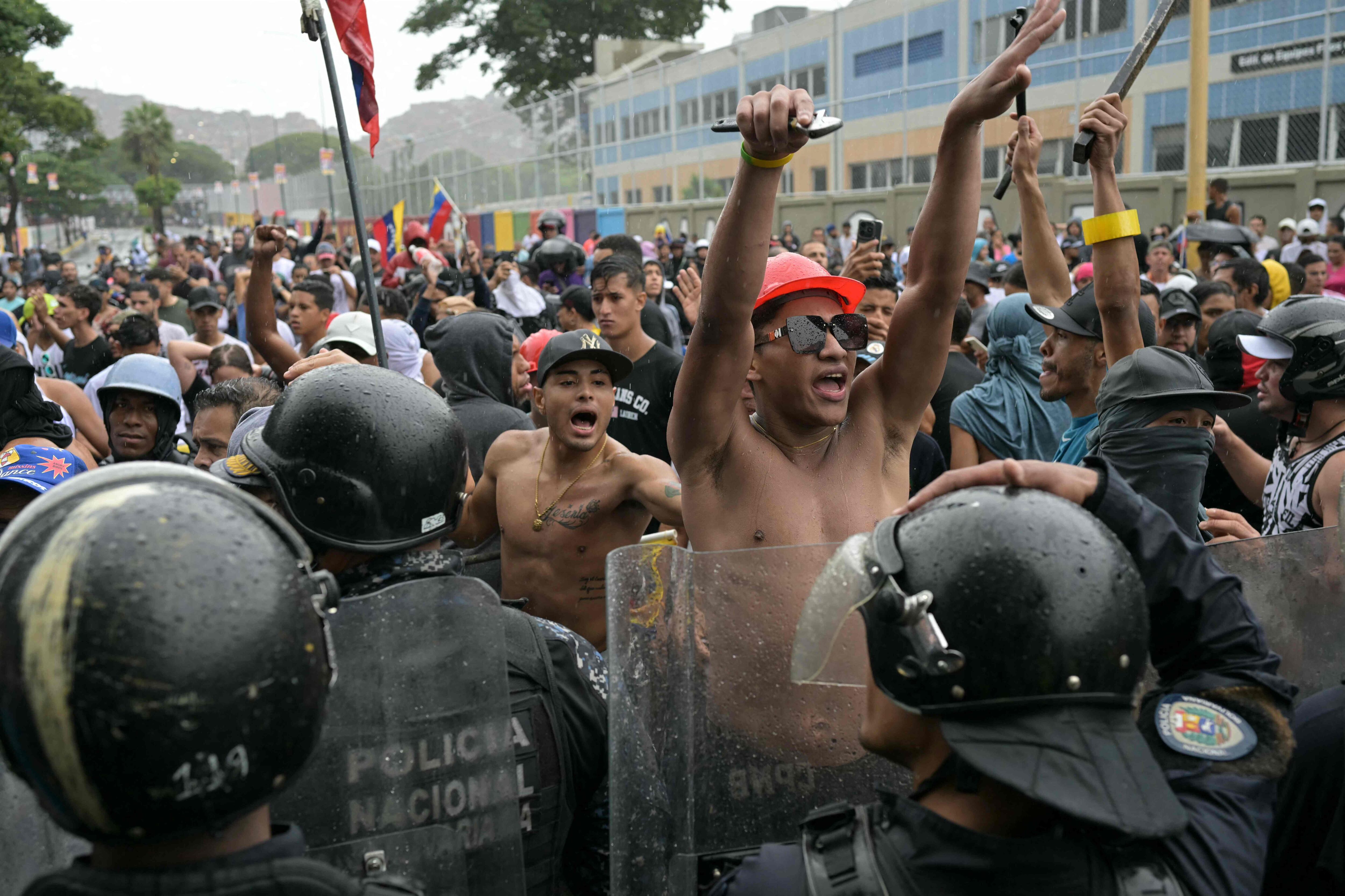 “¡Y va a caer, y va a caer, este gobierno va a caer!”, gritaban manifestantes bajo la lluvia en la gigantesca barriada de Petare, la mayor de Caracas. “¡Qué entregue el poder ya!”, exclamaban otros.