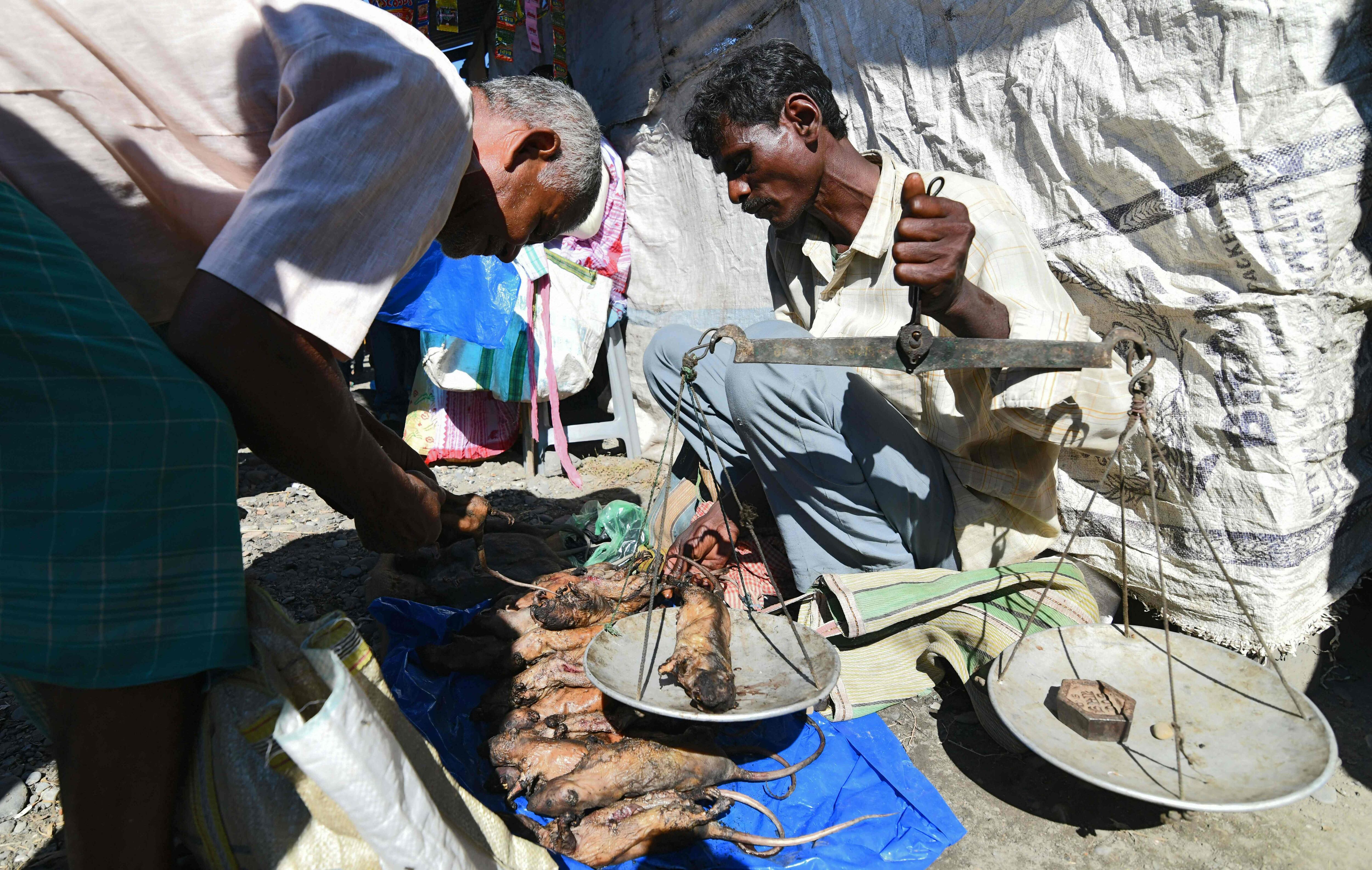 Los clientes del mercado dominical de Kumarikata, un pueblo de Assam, gran estado del noreste de India, aprecian más la rata que el pollo o el cerdo. La hierven, despellejan y cocinan en una salsa con especias.