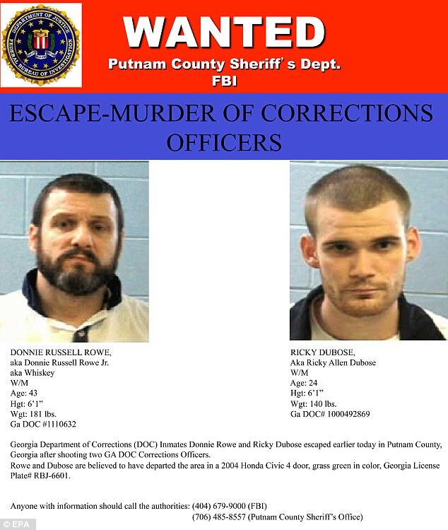 Los dos fugados, Donnie Rowe, de 43 años, y Ricky Dubose, de 24, ejecutaron brutalmente a dos guardias durante su huida en las primeras horas del martes, mientras eran transportados entre dos instalaciones penales.