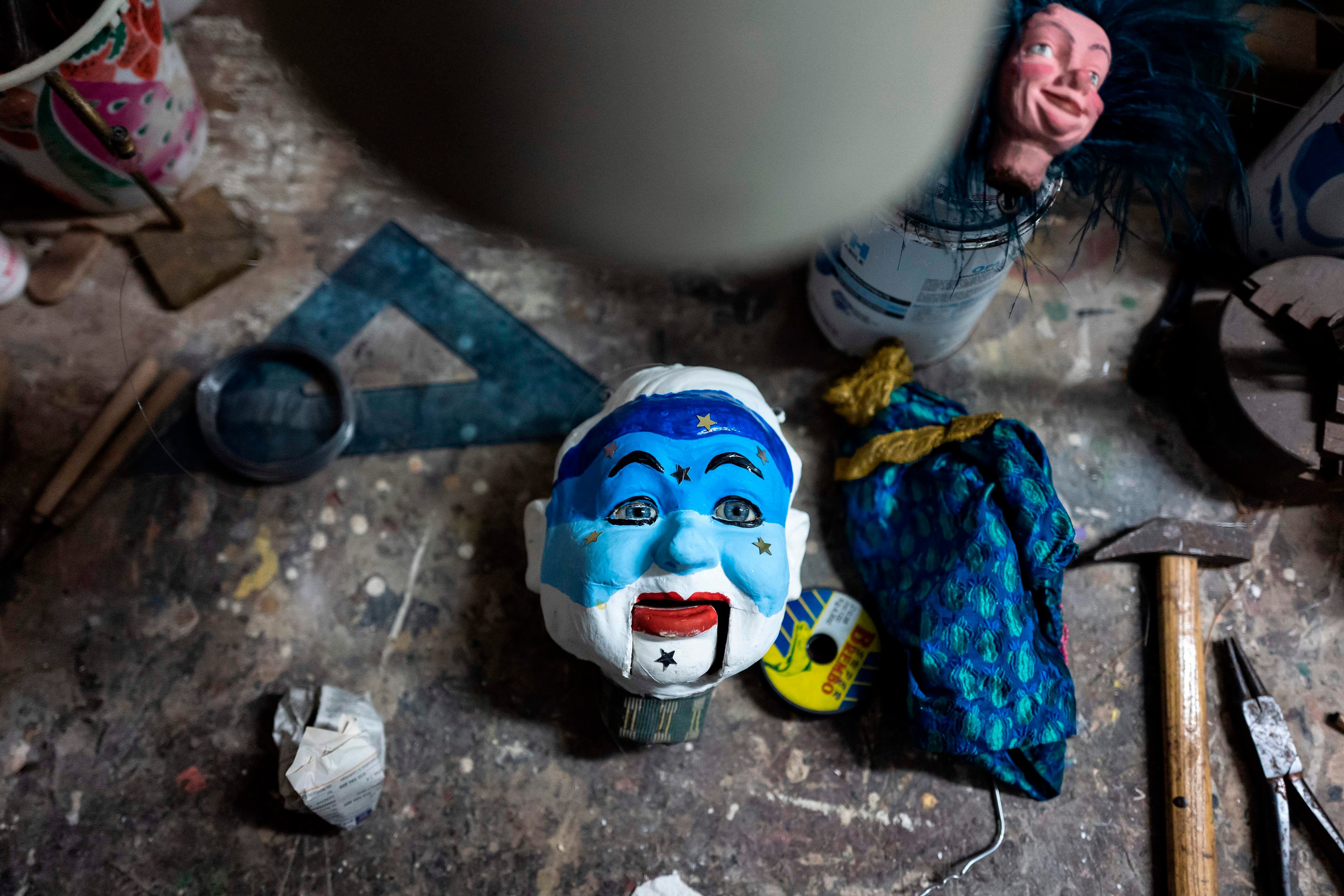"De tanto usarlos, los títeres se estropean", explica, indicando el zapato arruinado de uno de ellos.