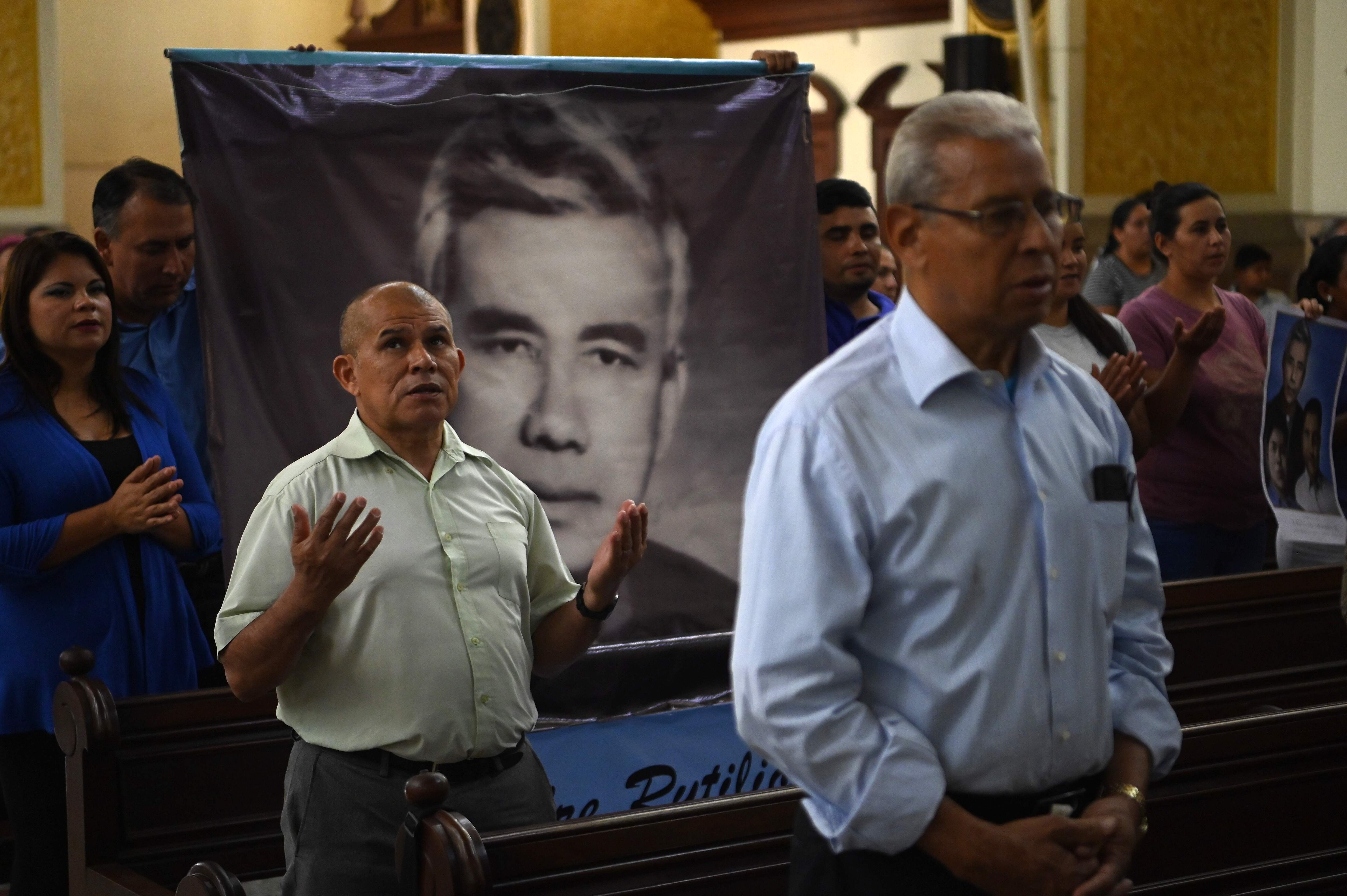 Centenares de feligreses llegaron a la iglesia catedral en el centro histórico de San Salvador, con carteles con las fotos del padre Tilo y de otros dos hombres que lo acompañaban y que fueron también asesinados.