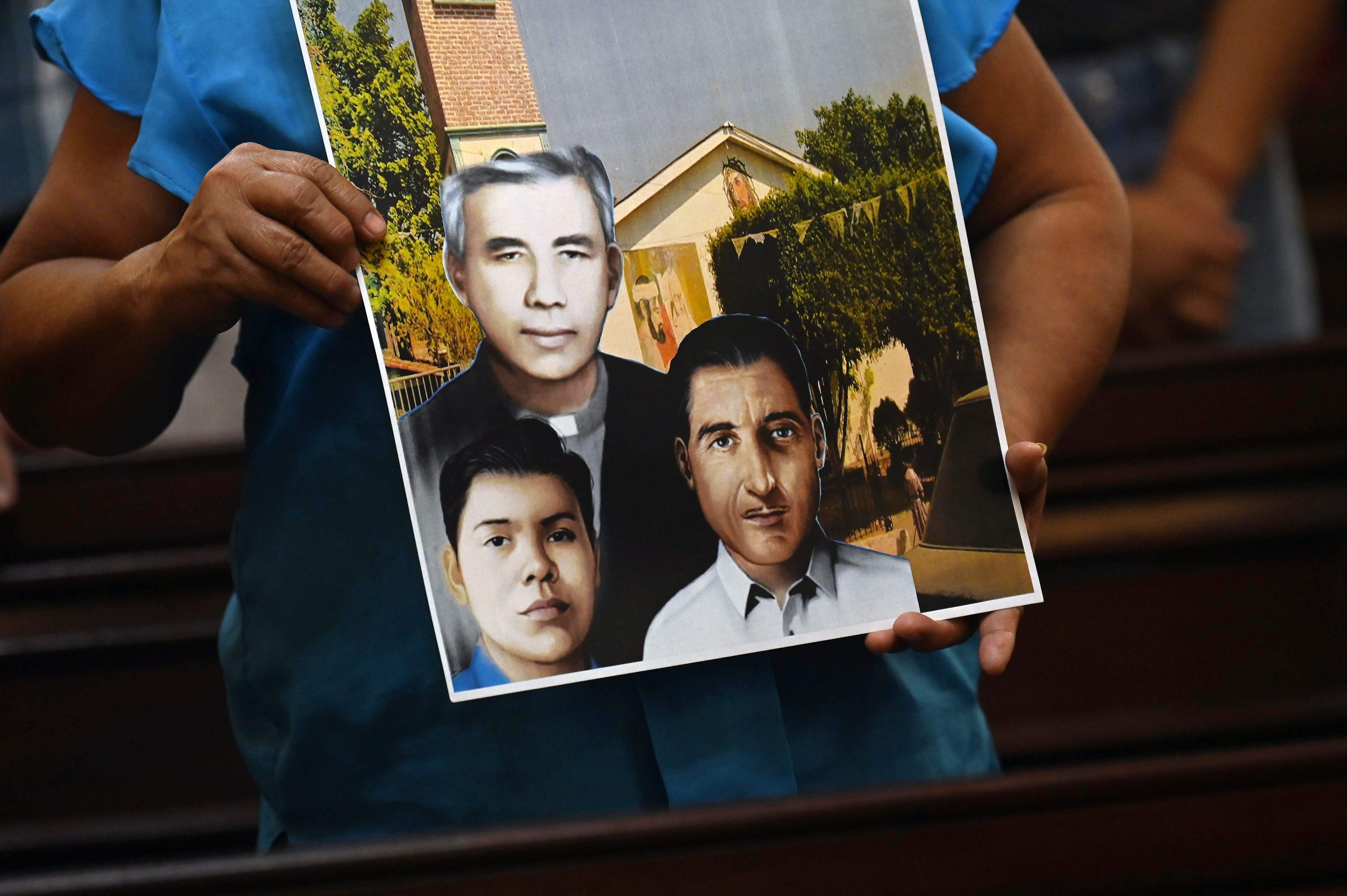 “Ellos murieron por su fe, los asesinaron por ayudar a los más pobres”, dijo a The Associated Press Teresa Sánchez, mientras mostraba el cartel con las fotos de los mártires salvadoreños.