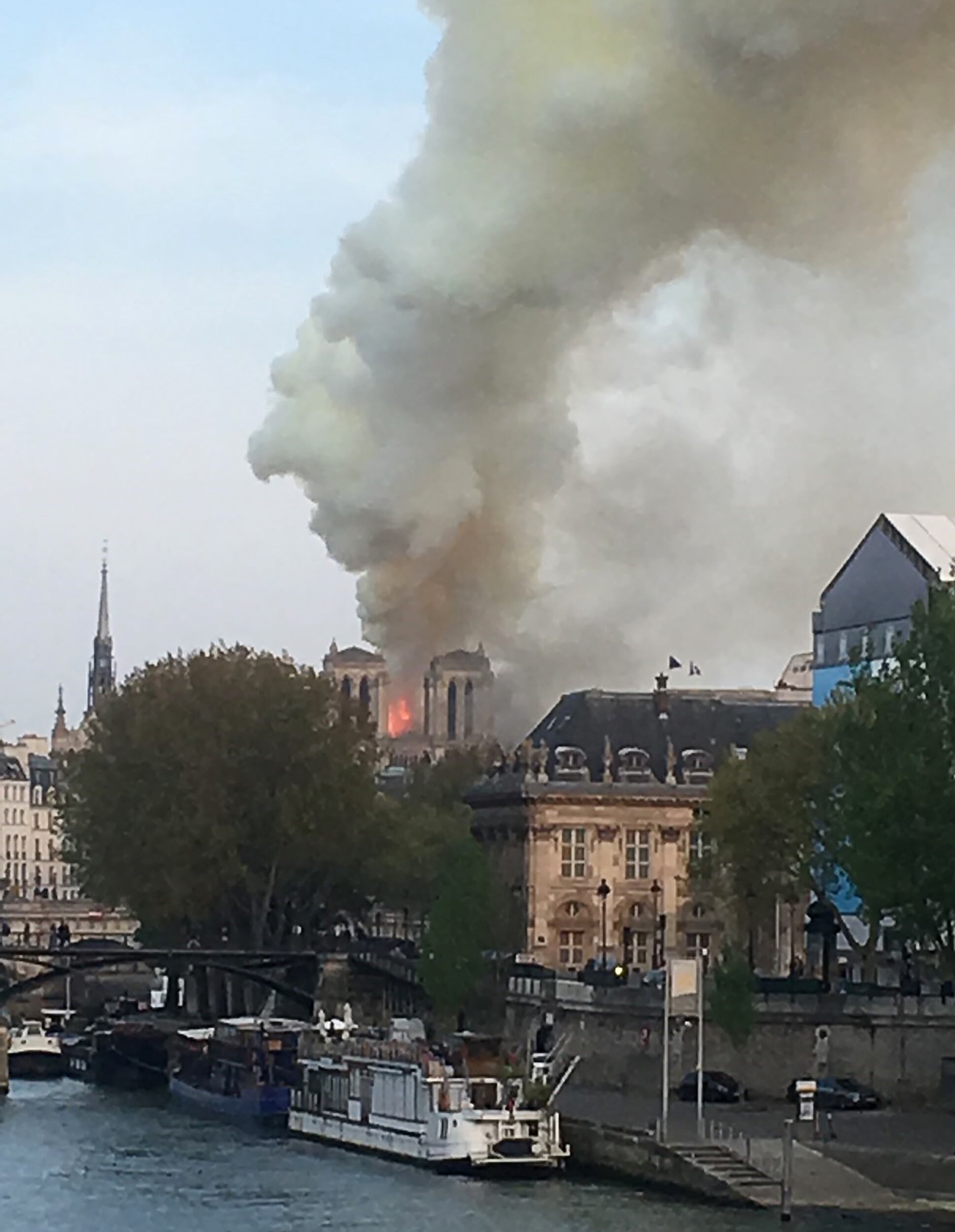 “Un terrible incendio está sucediendo en Notre Dame de París. Los (bomberos) están intentando controlar las llamas”, tuiteó la alcaldesa mientras el fuego devoraba el techado del monumento gótico de la Edad Media, en pleno corazón de París en la isla de la Cité.