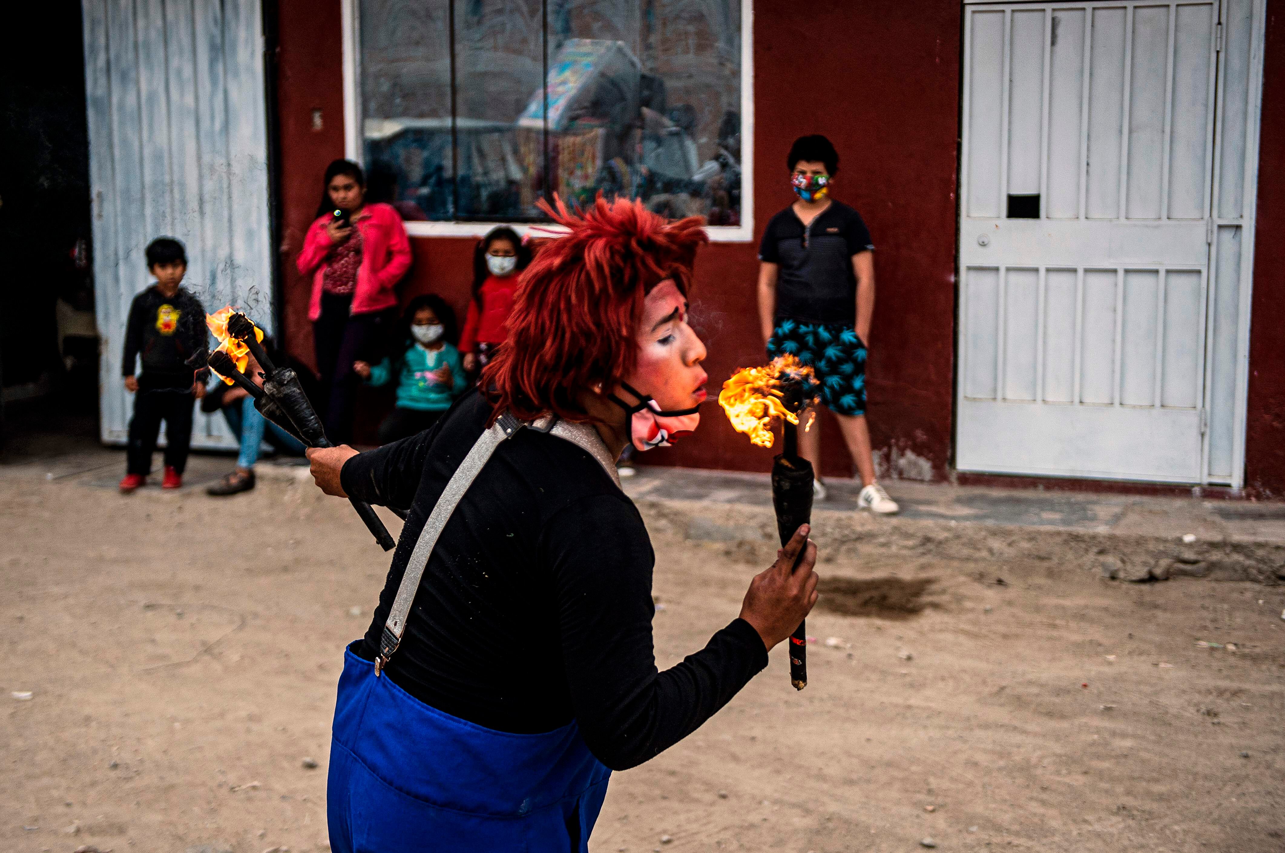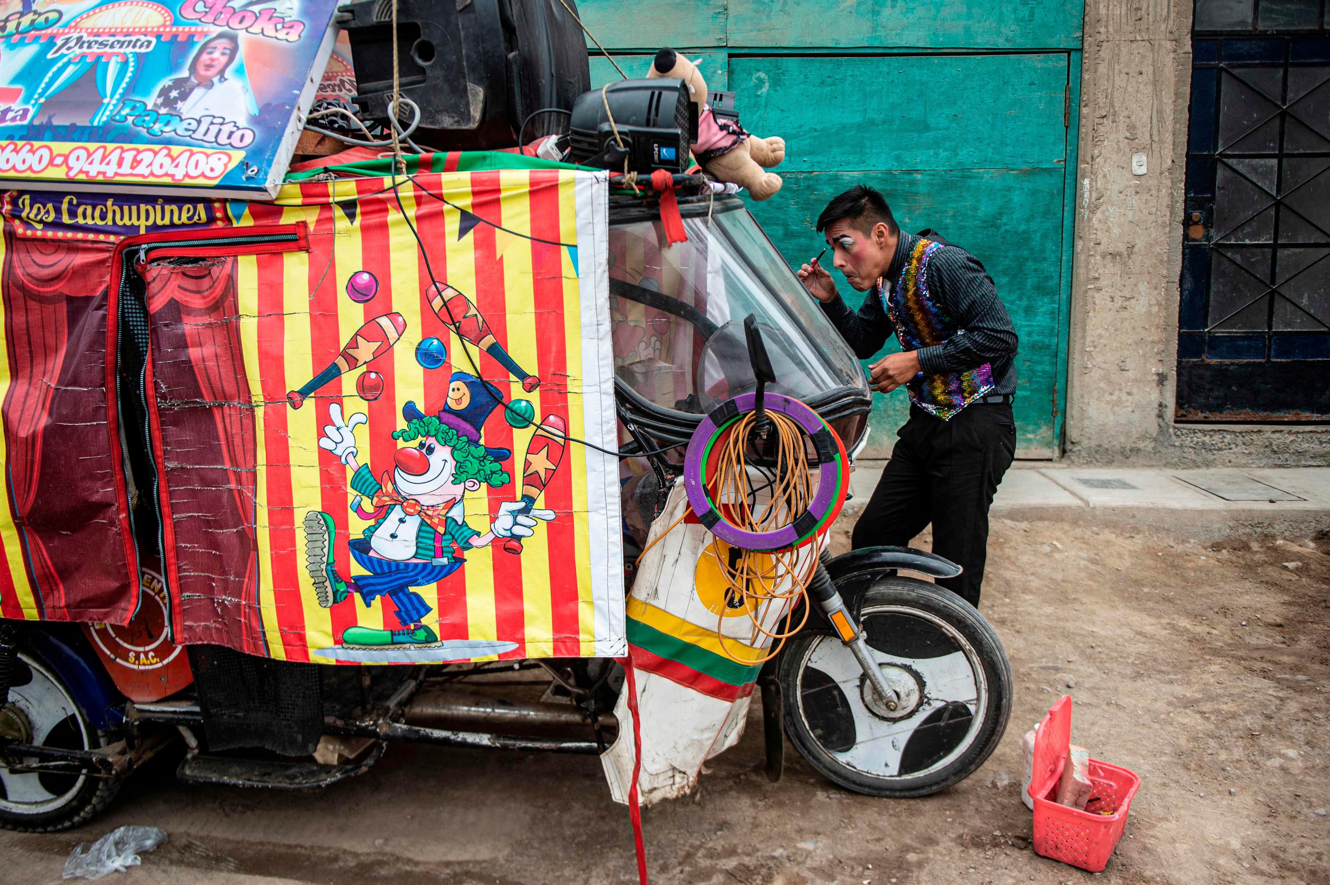 “En estos tiempos ya los circos no se abren por la pandemia”, dice Vargas, quien adopta el nombre de ‘Takito’ cuando viaja con sus compañeros en una colorida mototaxi para ofrecer espectáculos callejeros que permiten a los vecinos olvidar sus pesares, al menos por media hora, y a los cuatro amigos volver con algo de dinero a sus hogares.