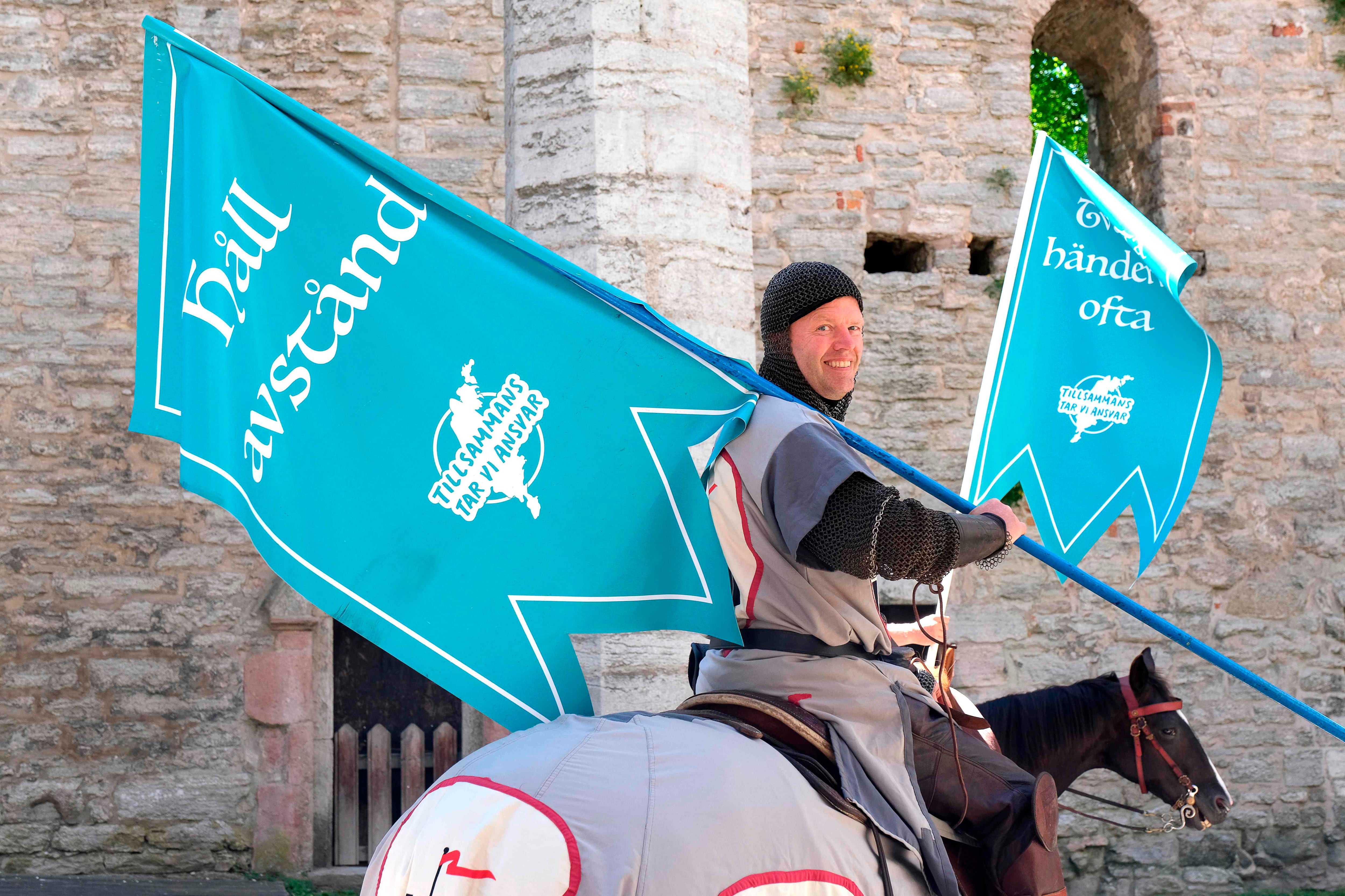 Las autoridades de una isla sueca decidieron emprender una singular cruzada contra la covid-19 mediante ocho caballeros medievales, que se pasean con sus armaduras para recordar a los turistas que deben guardar la distancia.