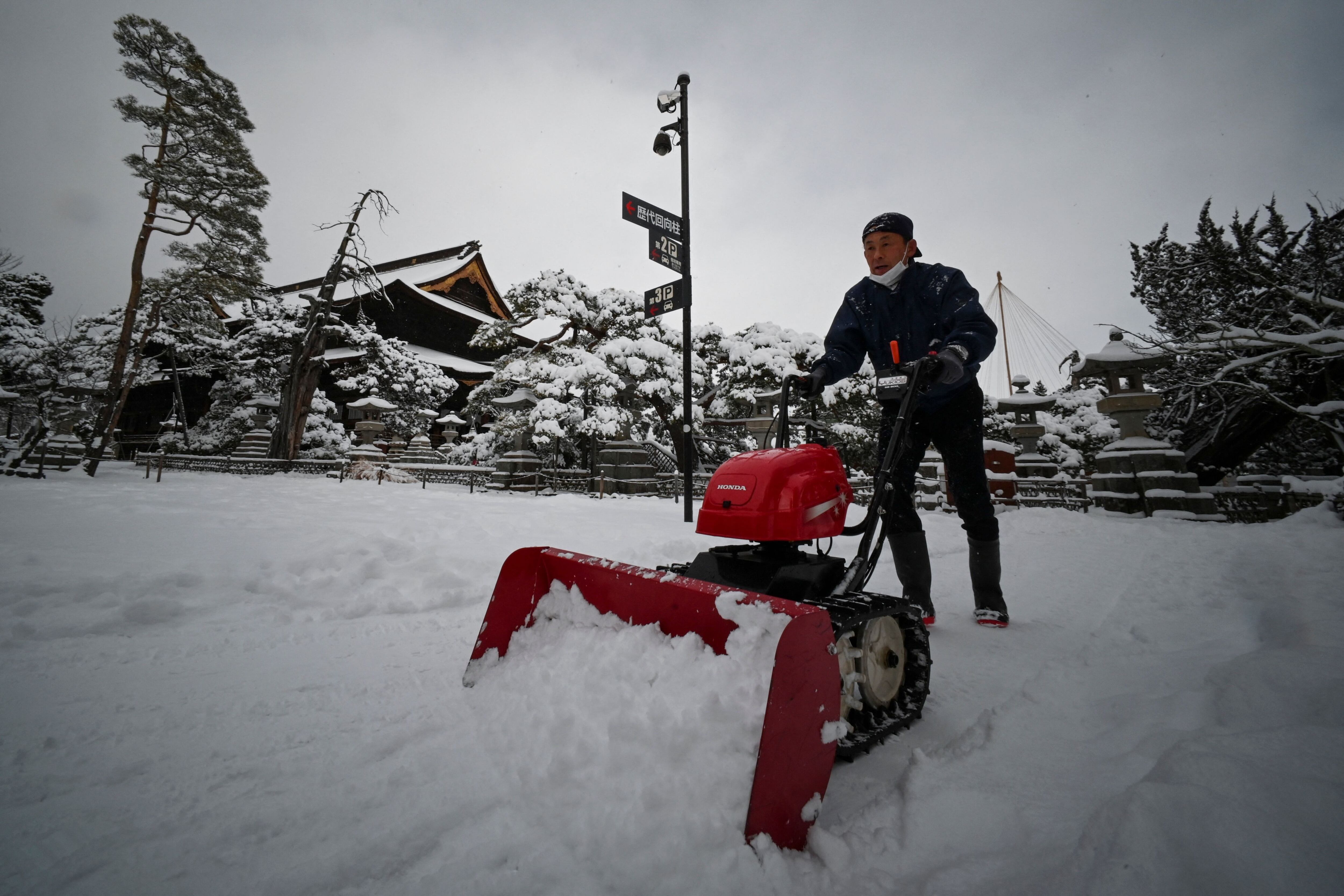 Lejos de estos contratiempos, en el templo de Zenkoji, en la ciudad montañosa de Nagano (centro), los visitantes se deleitaron con el espectáculo de la nieve. La misma estampa se vio en Kioto, la antigua capital imperial, dotada de un rico patrimonio histórico.