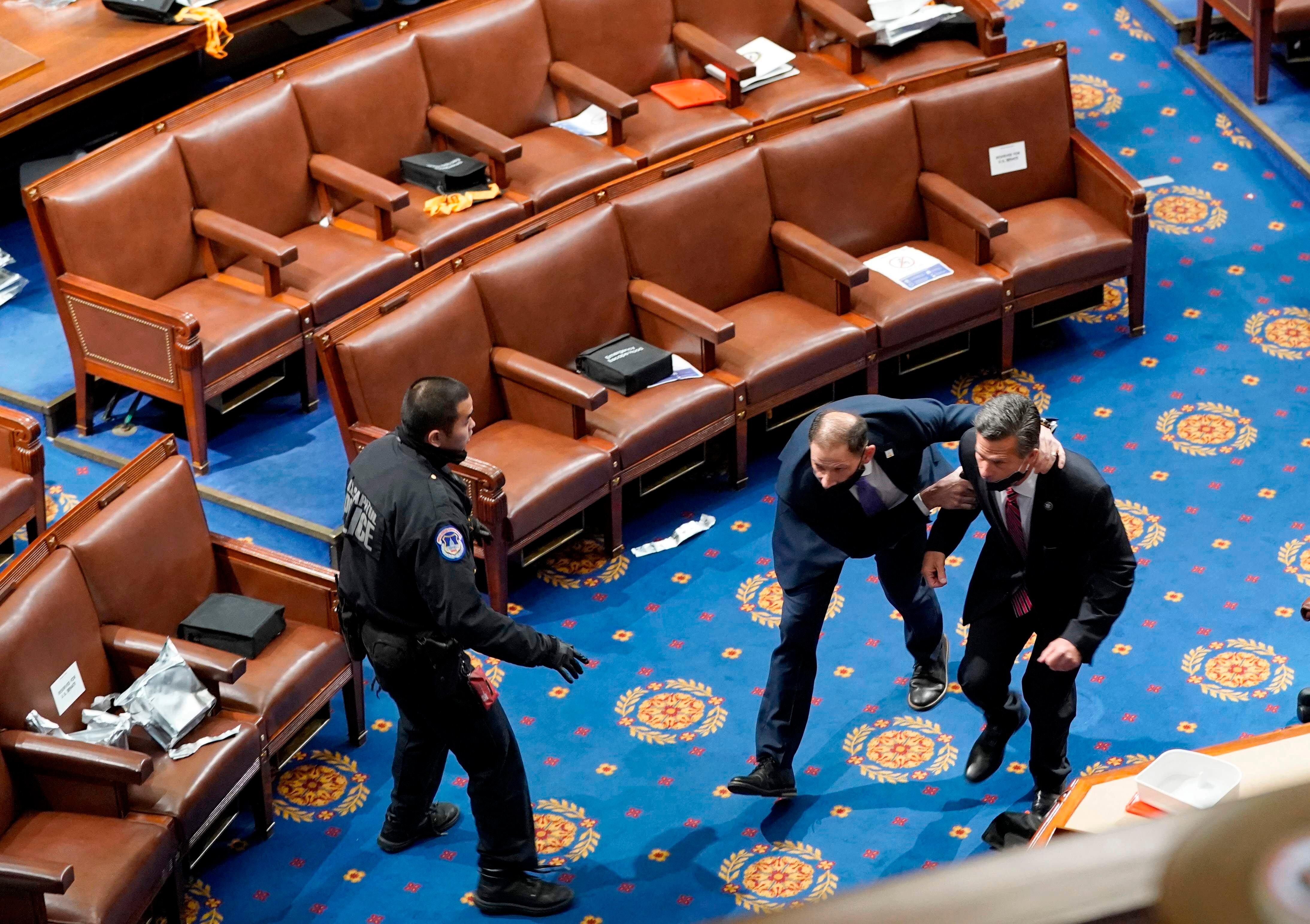 La turba que entró al Capitolio forzó la interrupción de los debates poco después de que el vicepresidente Mike Pence anunciara que no tenía autoridad constitucional para oponerse a la certificación del triunfo de Biden, algo que Trump le había pedido hacer un día antes.